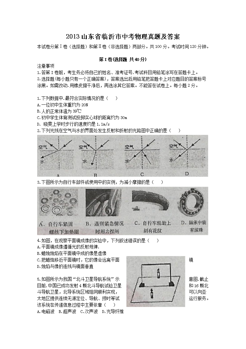 【文档名称】 2013山东省临沂市中考物理真题及答案(Word版).doc