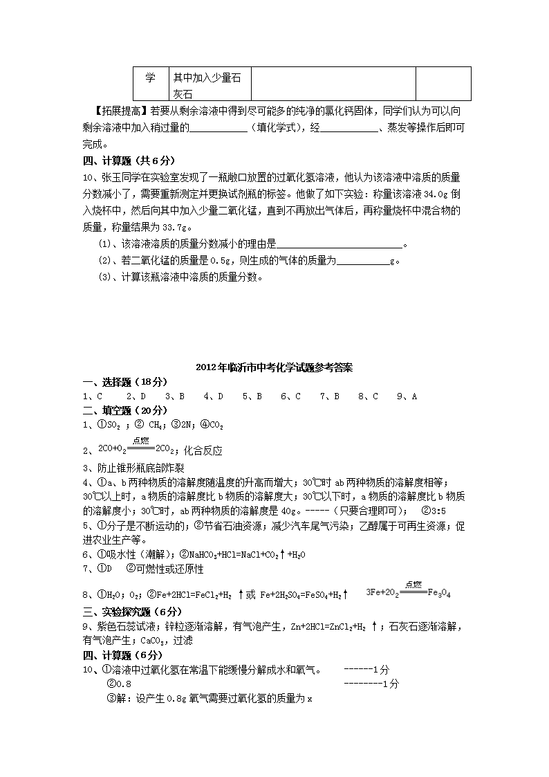 【文档预览】 无忧考网整理发布2012山东省临沂市中考化学真题及答案(Word版),前五页预览如下: