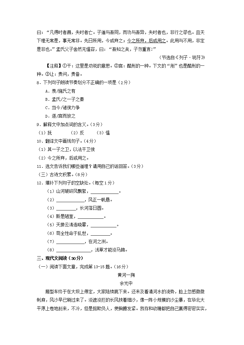 【文档名称】 2018年江西九江中考语文真题及答案(Word版).doc