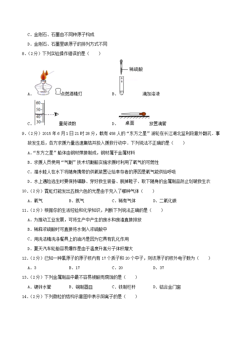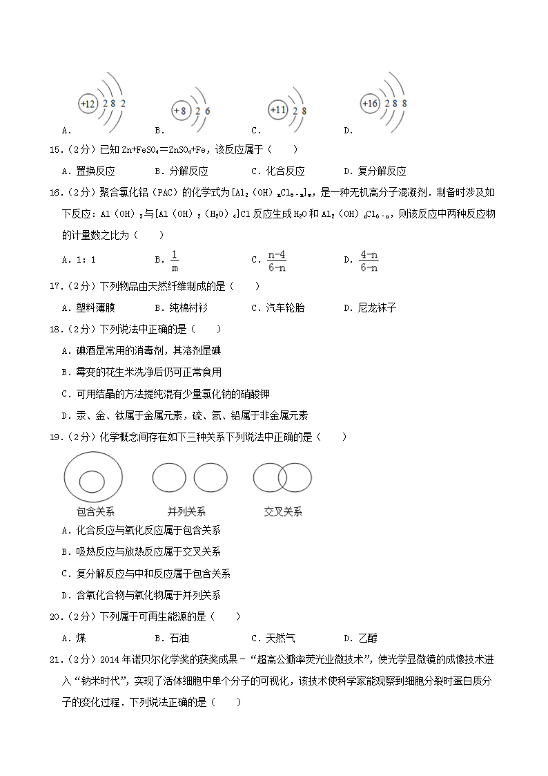 【文档名称】 2015年湖南省常德市中考化学真题及答案(Word版).doc