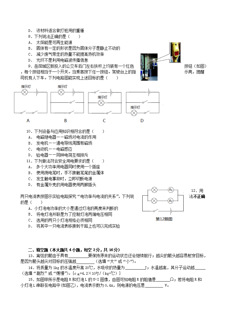【文档名称】 2015年湖南省岳阳市中考物理真题及答案(Word版).doc