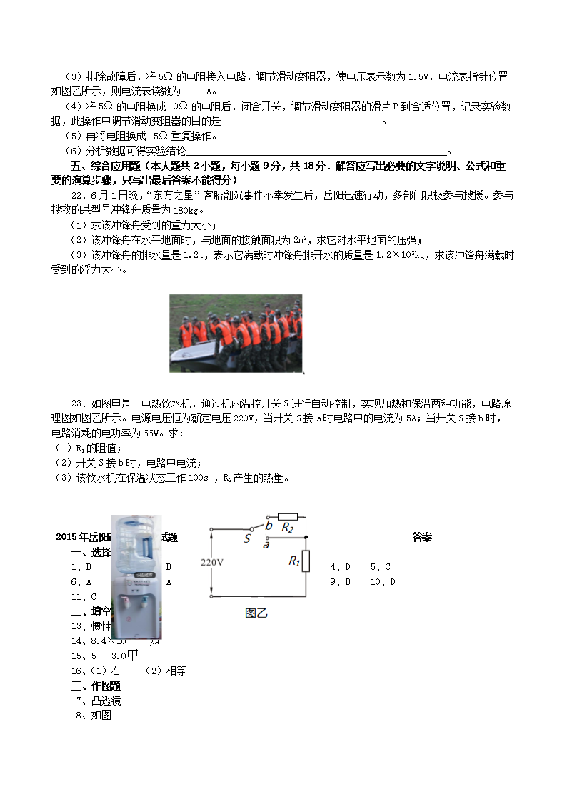 【文档预览】 无忧考网整理发布2015年湖南省岳阳市中考物理真题及答案(Word版),前五页预览如下: