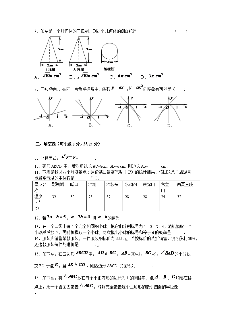 【文档名称】 2014年宁夏银川中考数学真题及答案(Word版).doc