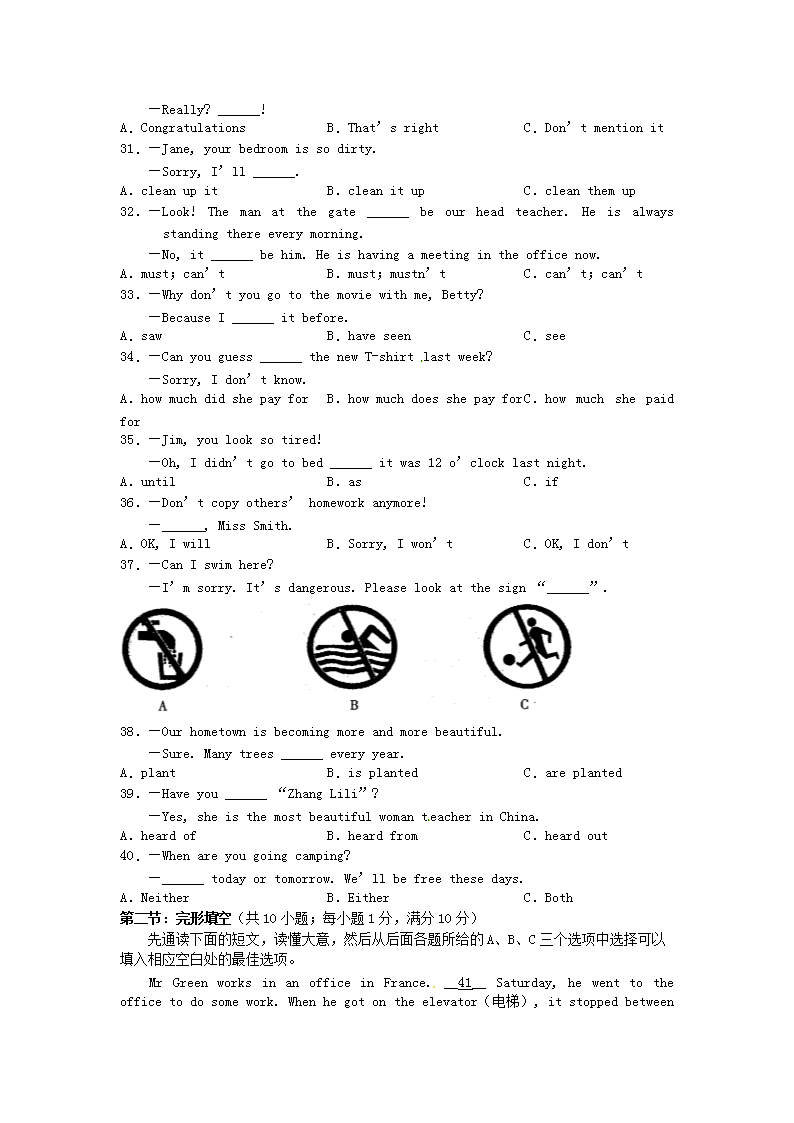 【文档预览】 无忧考网整理发布2012年四川省广安市中考英语真题及答案(Word版),前五页预览如下: