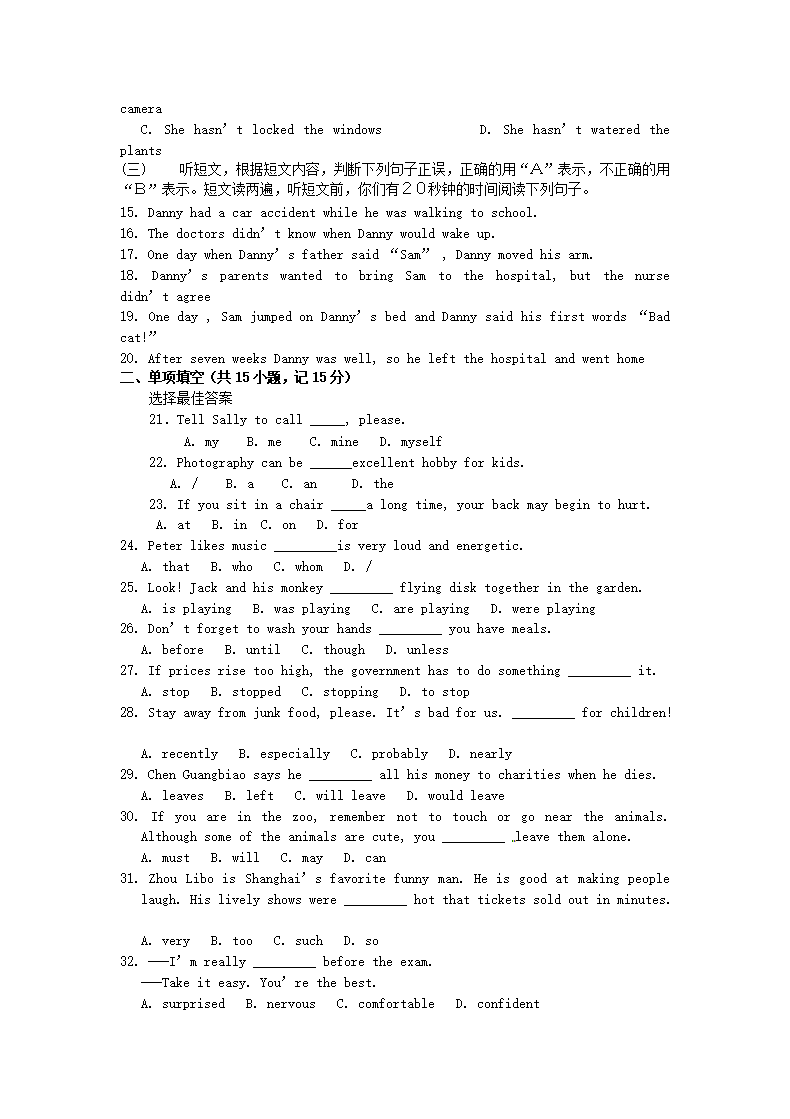 【文档预览】 无忧考网整理发布2011山东省临沂市中考英语真题及答案(Word版),前五页预览如下:
