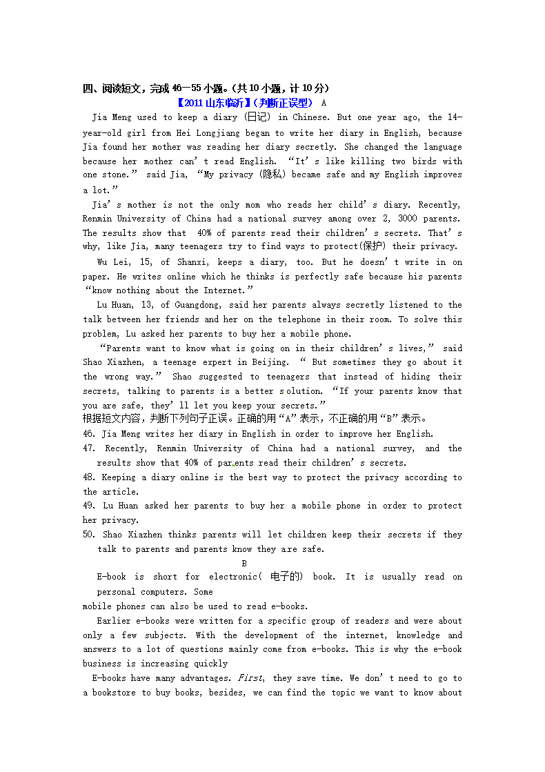 【文档名称】 2011山东省临沂市中考英语真题及答案(Word版).doc
