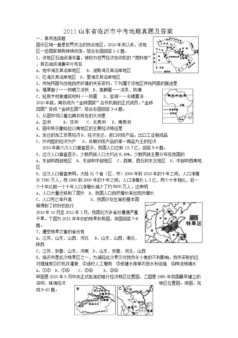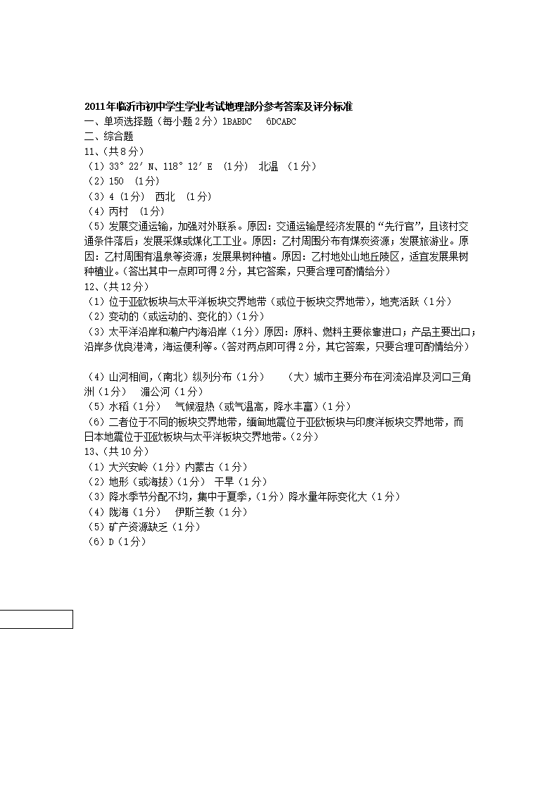 【文档名称】 2011山东省临沂市中考地理真题及答案(Word版).doc