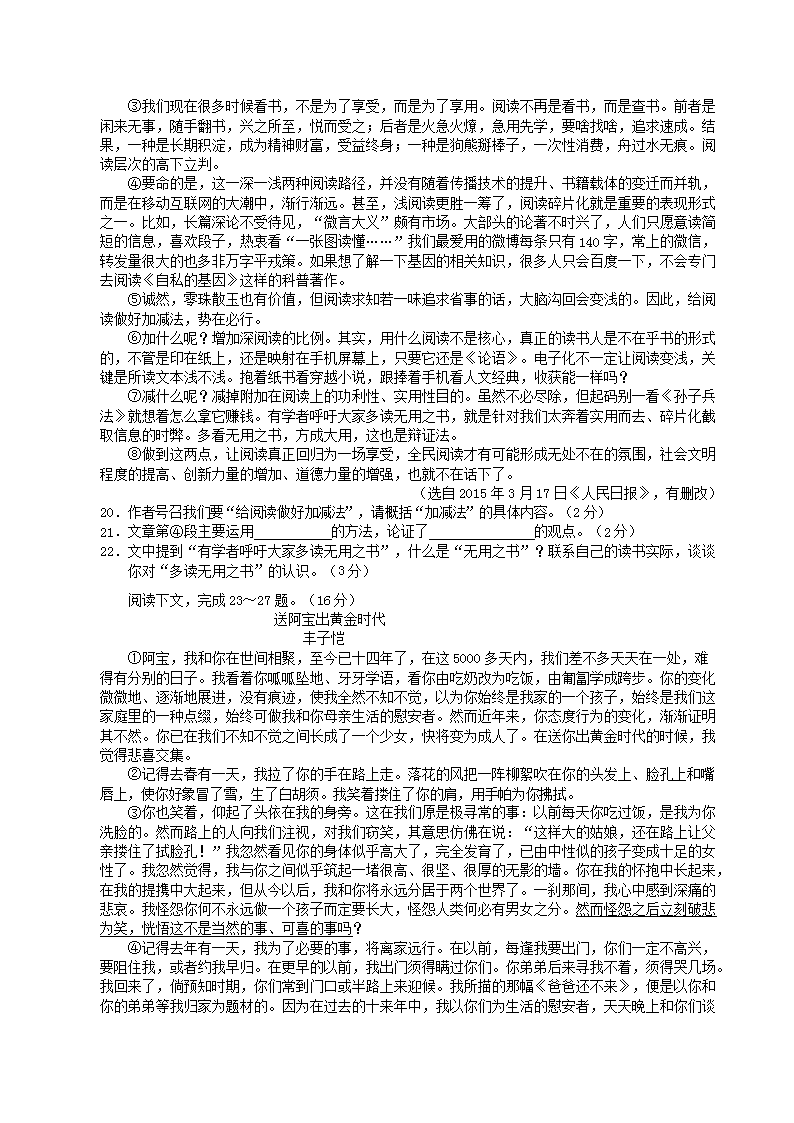 【文档预览】 无忧考网整理发布2015年湖南省益阳市中考语文真题及答案(Word版),前五页预览如下: