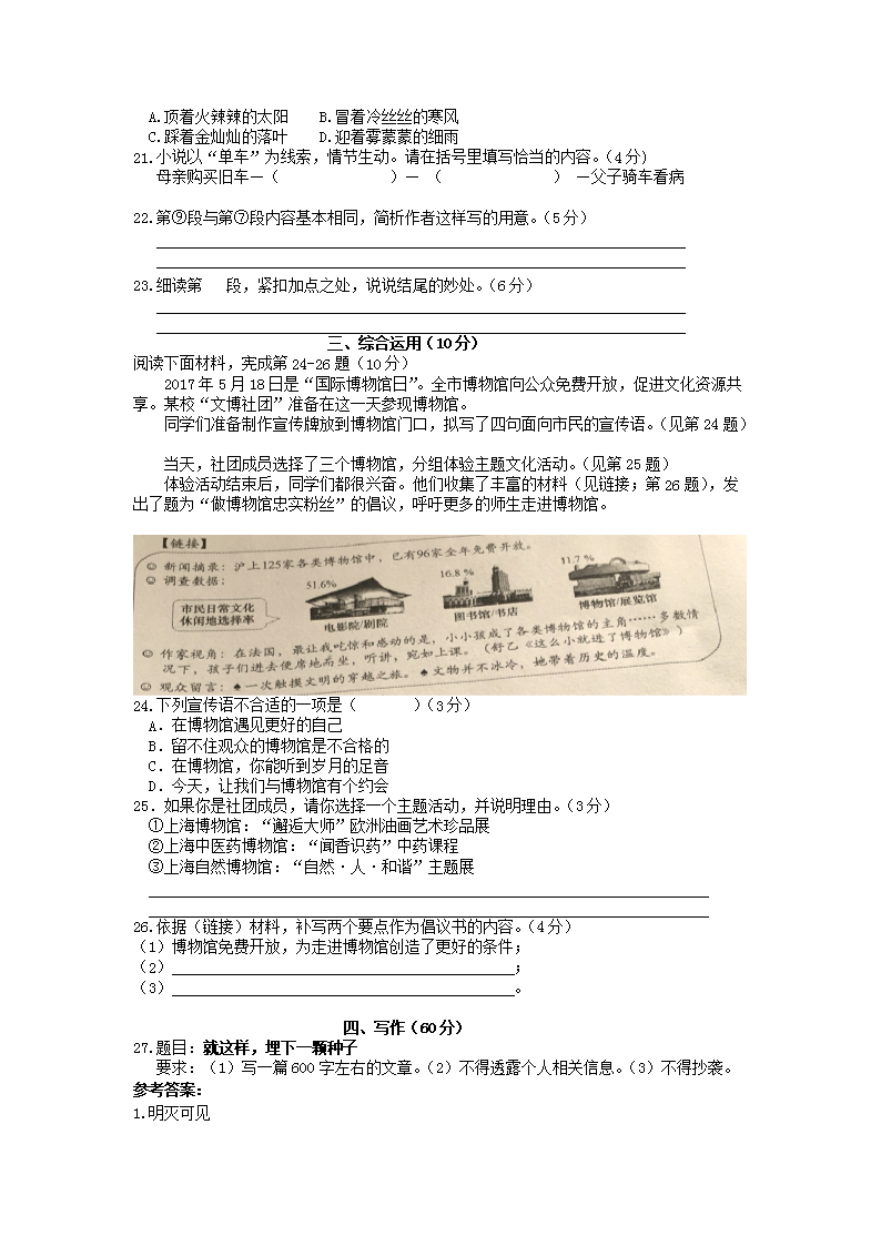 【文档名称】 2017年上海闵行中考语文真题及答案(Word版).doc