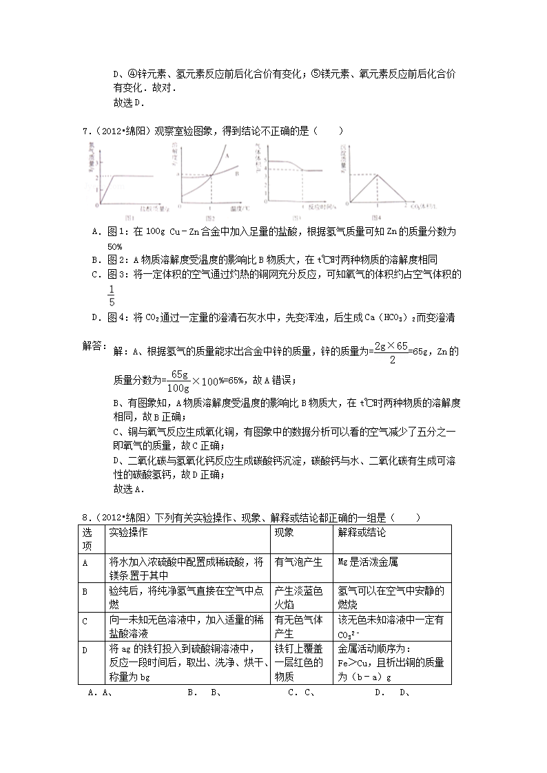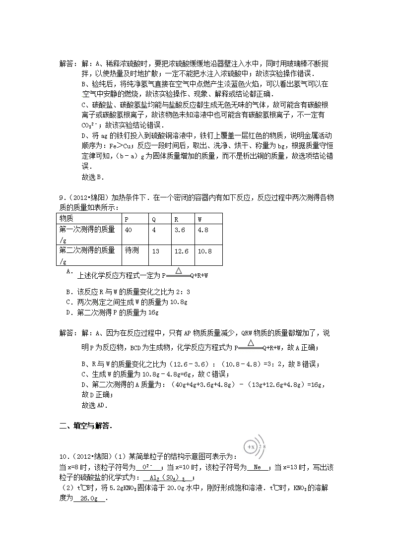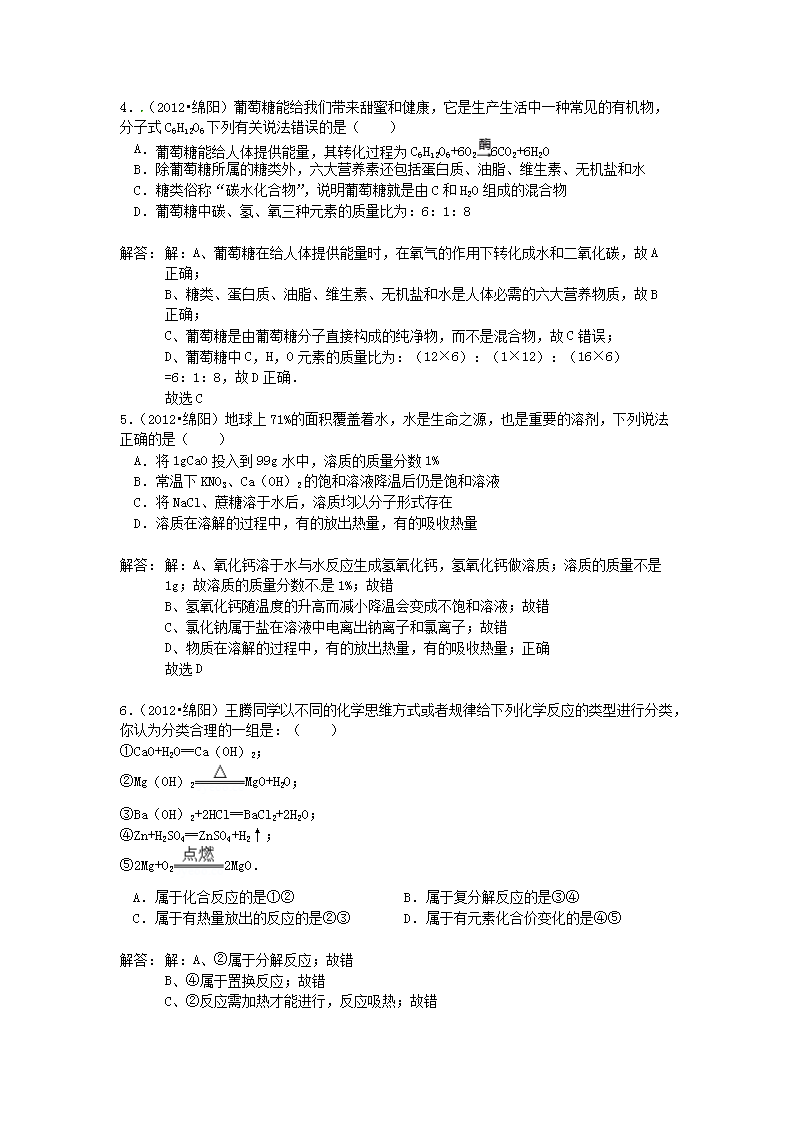 【文档名称】 2012年四川省绵阳市中考化学真题及答案(Word版).doc