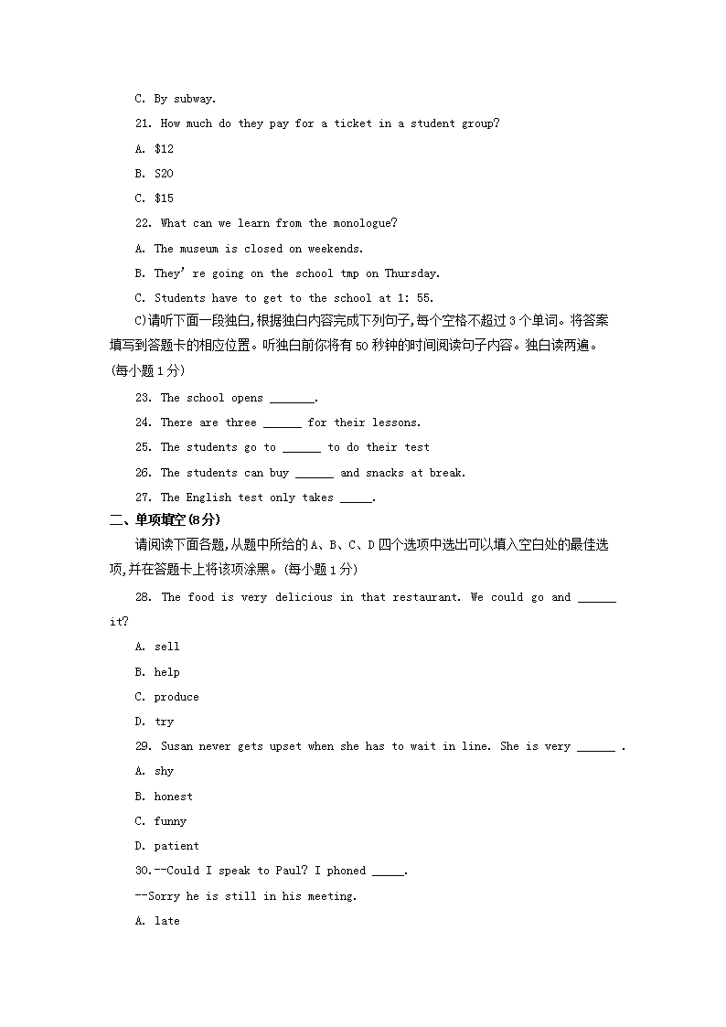 【文档名称】 2018年江西南昌中考英语真题及答案(Word版).doc
