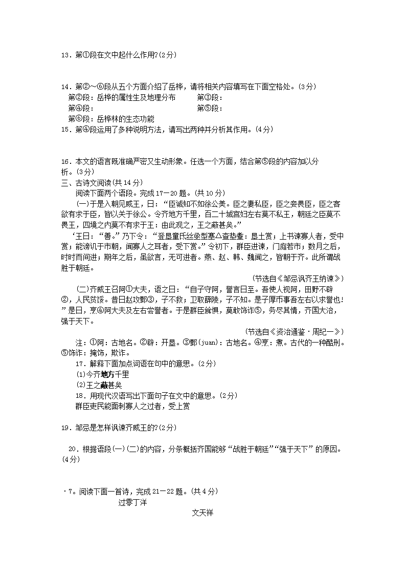 【文档预览】 无忧考网整理发布2012年河南安阳中考语文真题及答案(Word版),前五页预览如下: