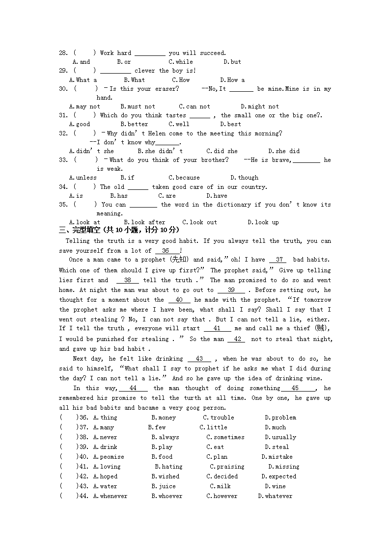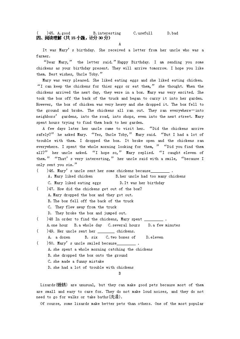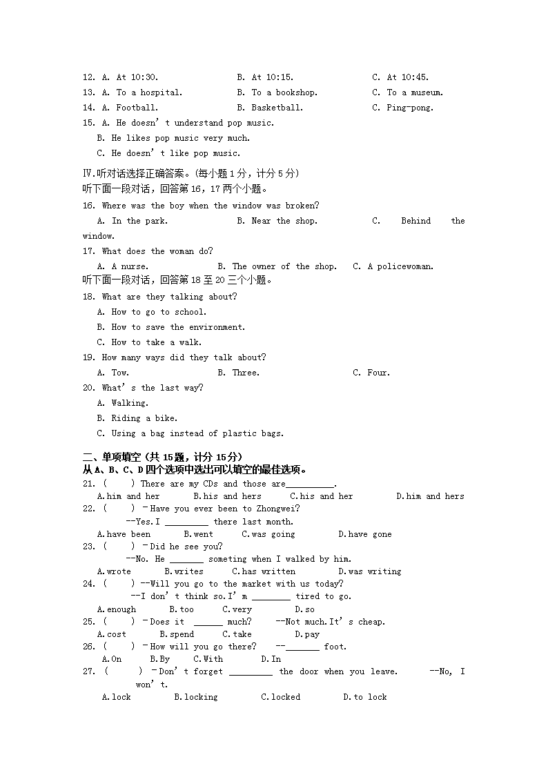 【文档预览】 无忧考网整理发布2014年宁夏石嘴山中考英语真题及答案(Word版),前五页预览如下: