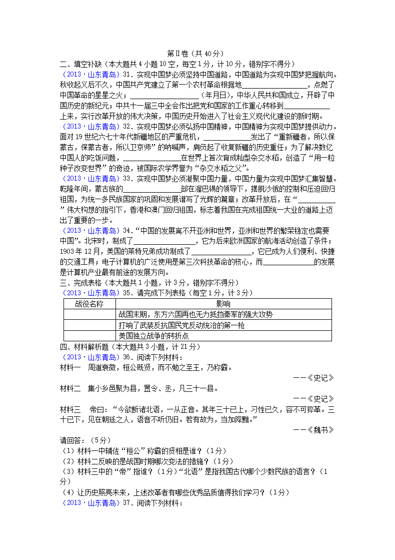 【文档名称】 2013山东省青岛市中考历史真题及答案(Word版).doc