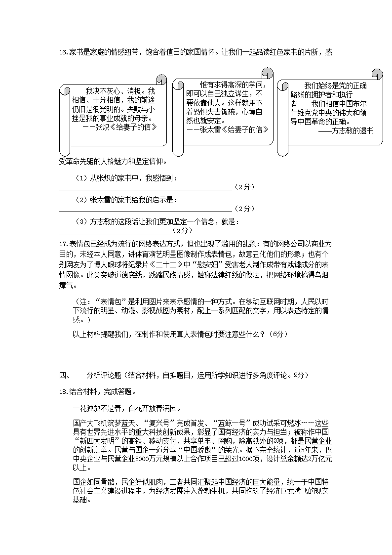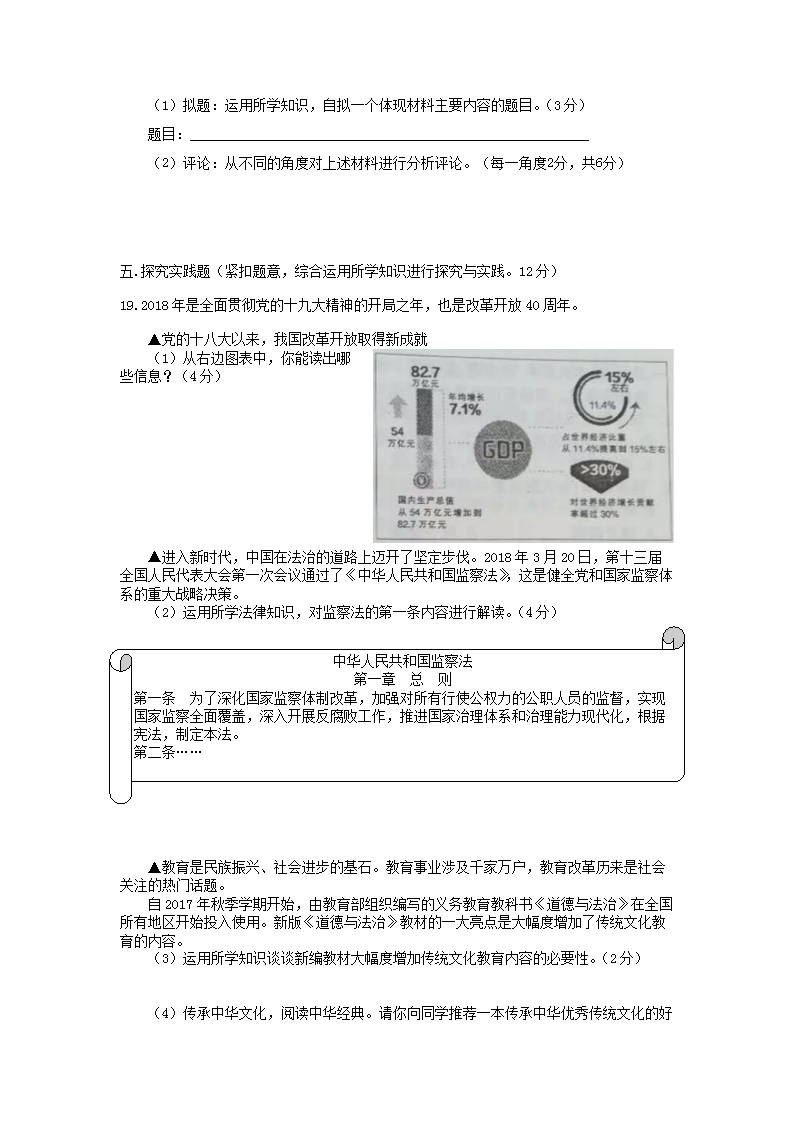 【文档名称】 2018年江西萍乡中考政治真题及答案(Word版).doc