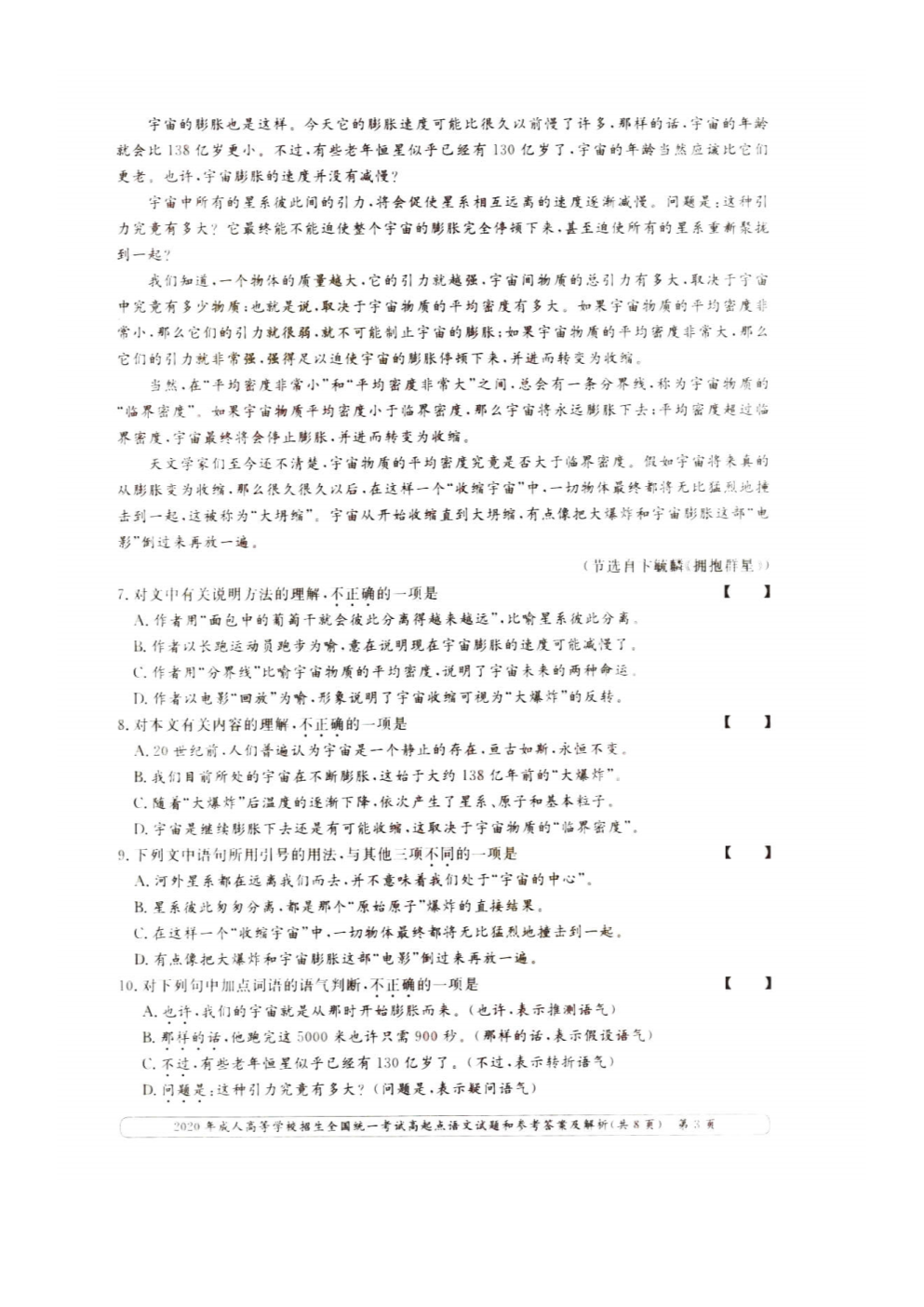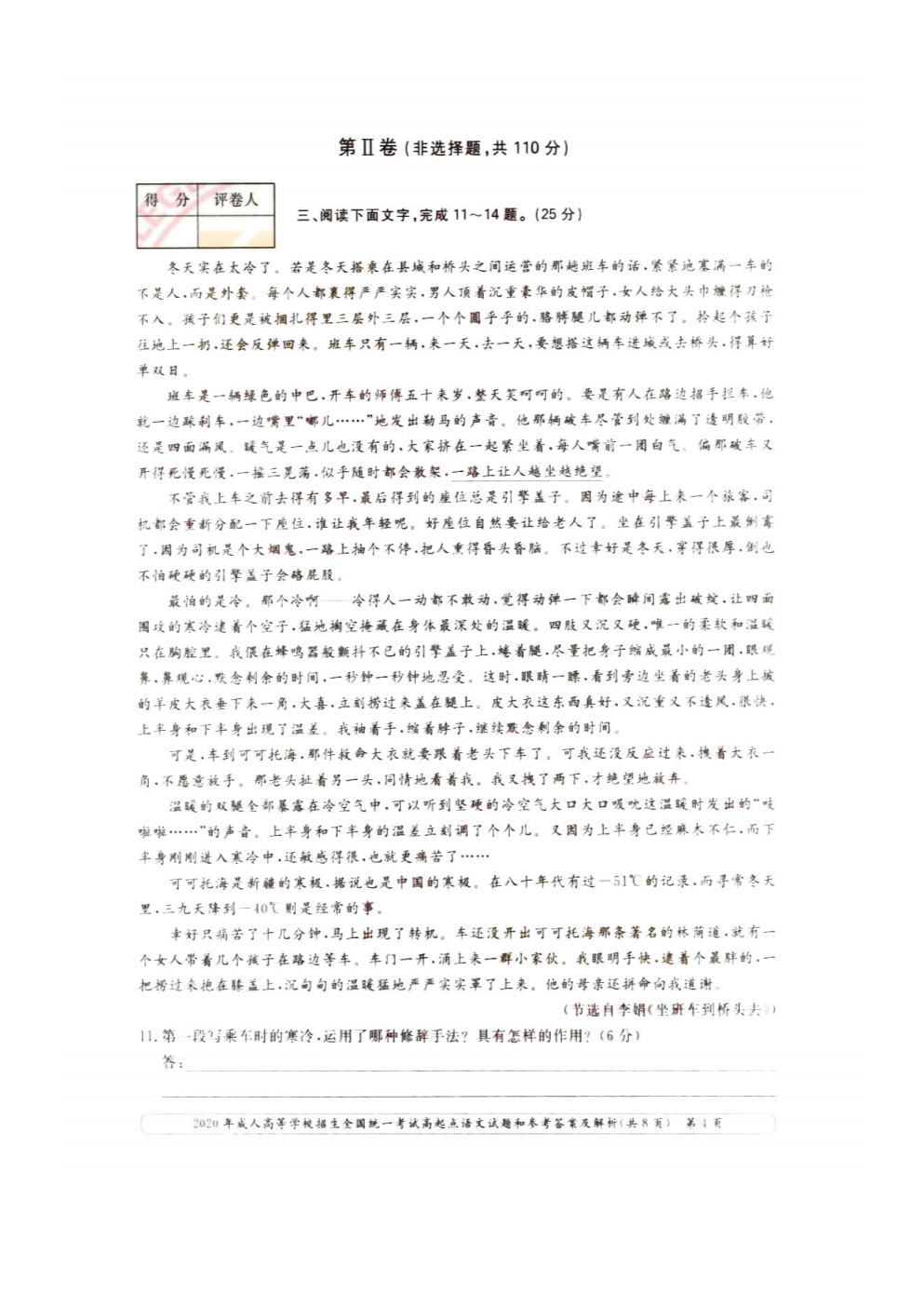 【文档名称】 2020年北京成人高考高起点语文真题及答案(图片版).doc