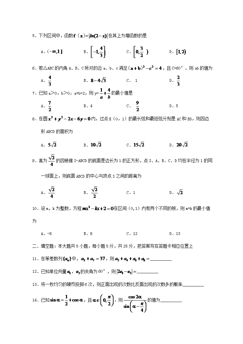 【文档名称】 2011年重庆高考理科数学真题及答案(Word版).doc