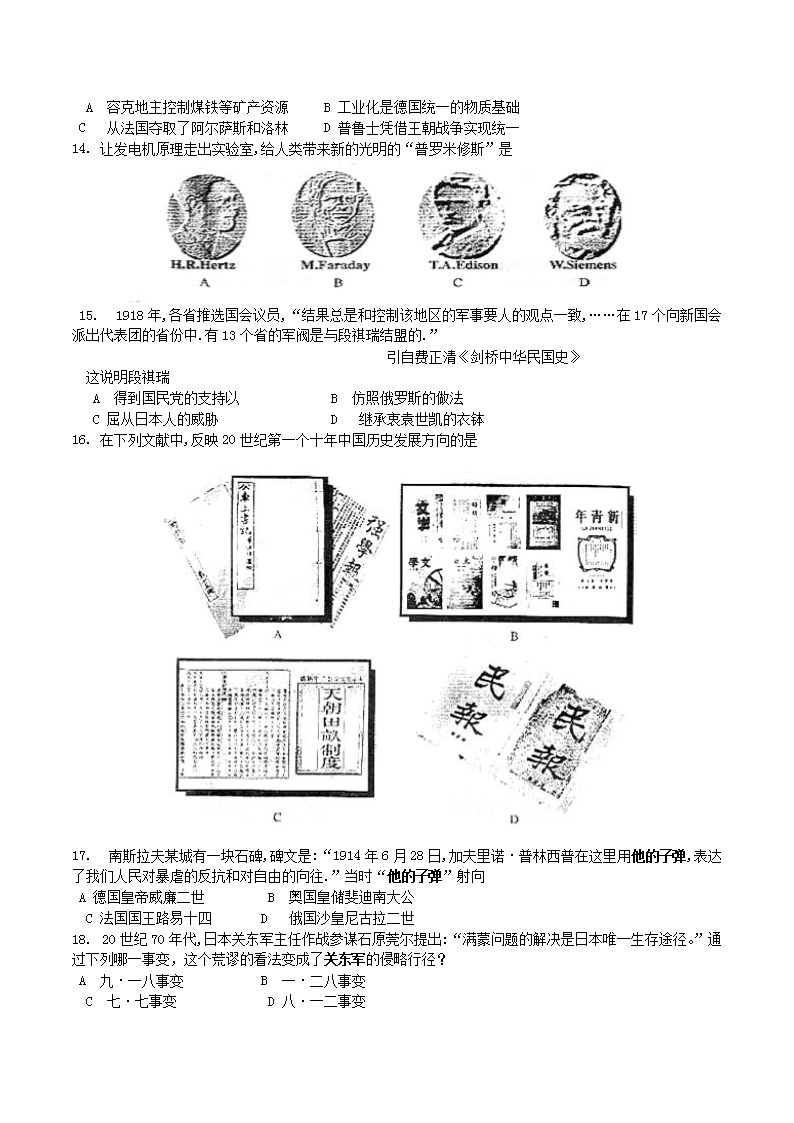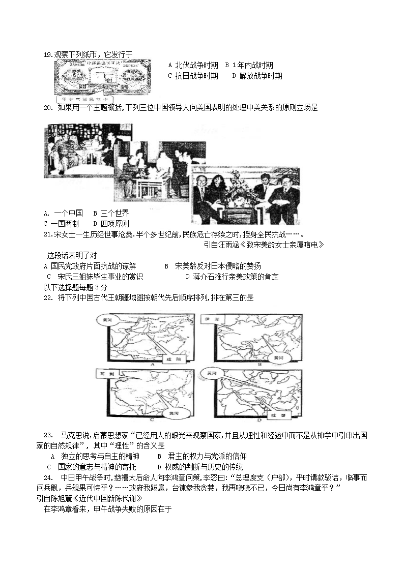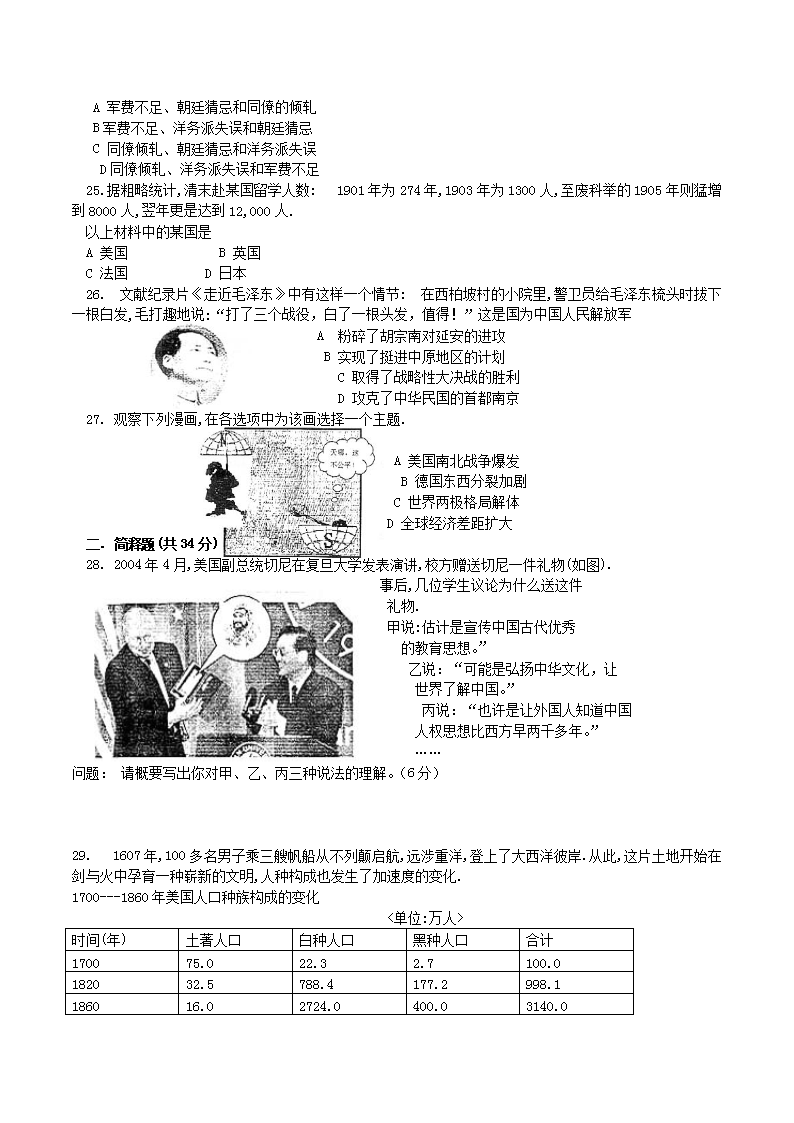 【文档名称】 2004年上海高考历史真题及答案(Word版).doc