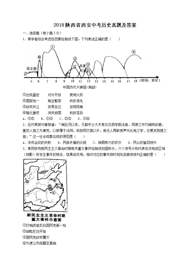 【文档名称】 2018陕西省西安中考历史真题及答案(Word版).doc