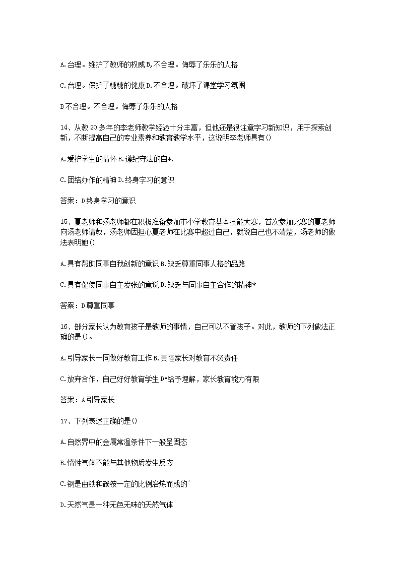 【文档名称】 2016下半年重庆教师资格考试小学综合素质真题及答案(Word版).doc
