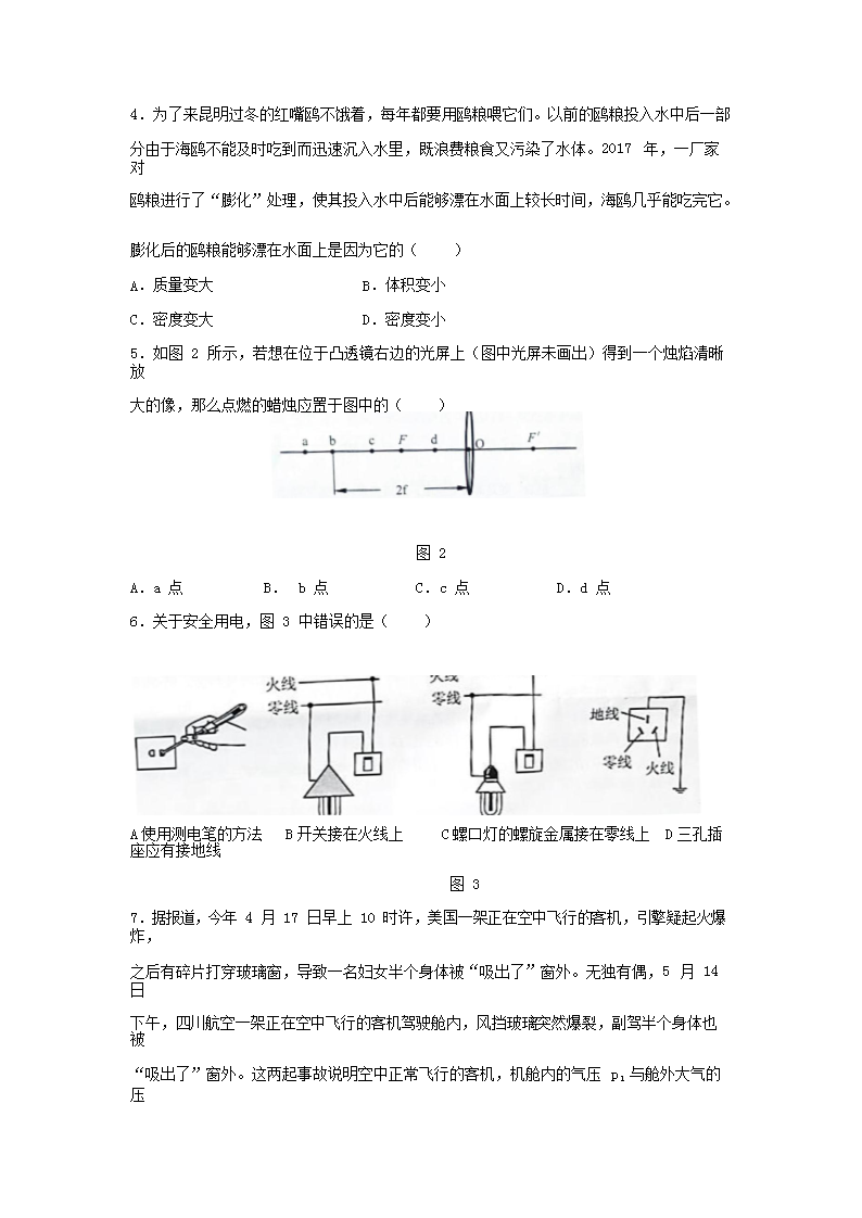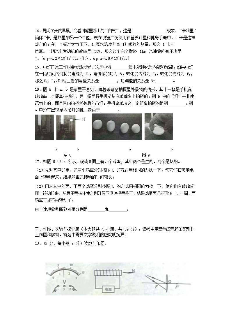 【文档名称】 2018年云南昆明中考物理真题及答案(Word版).doc