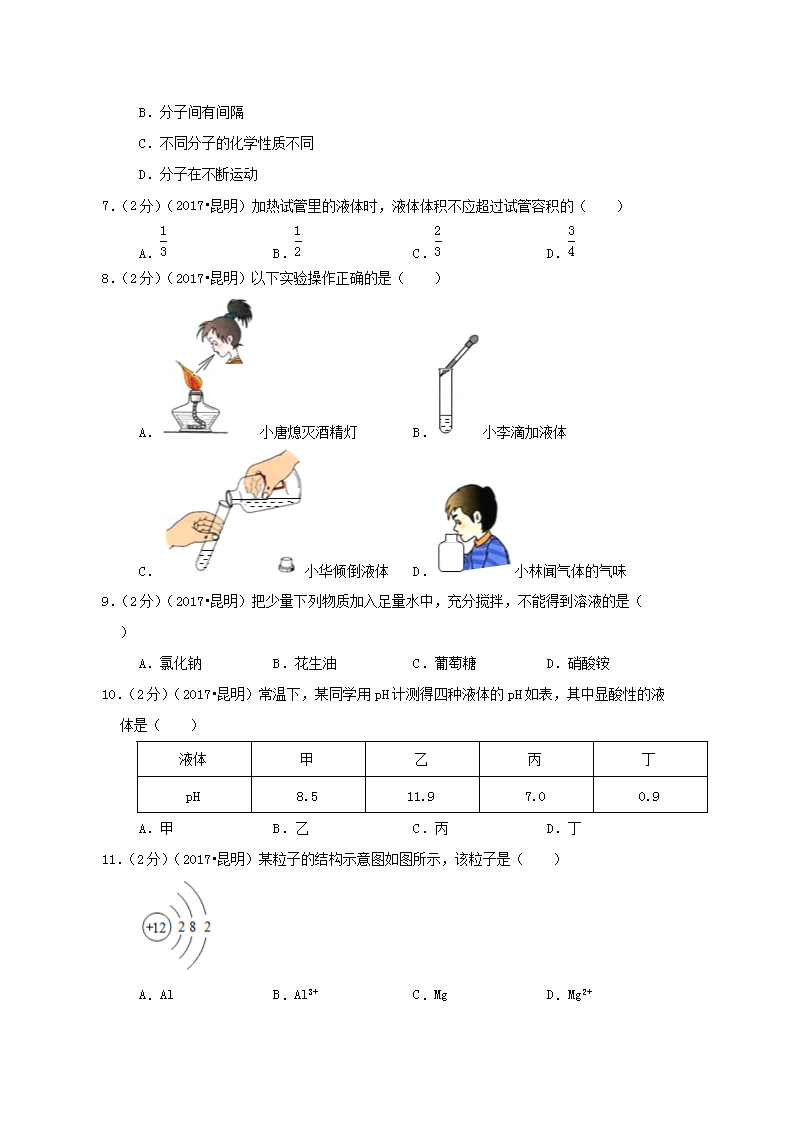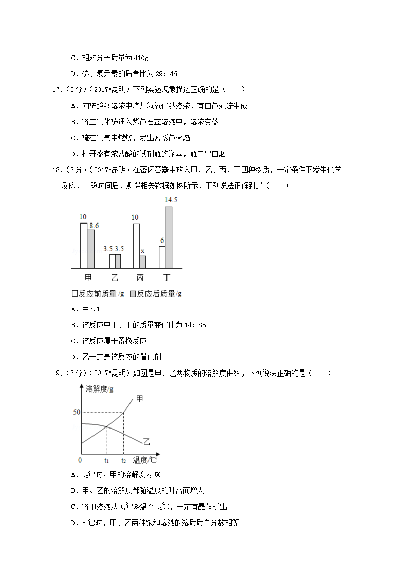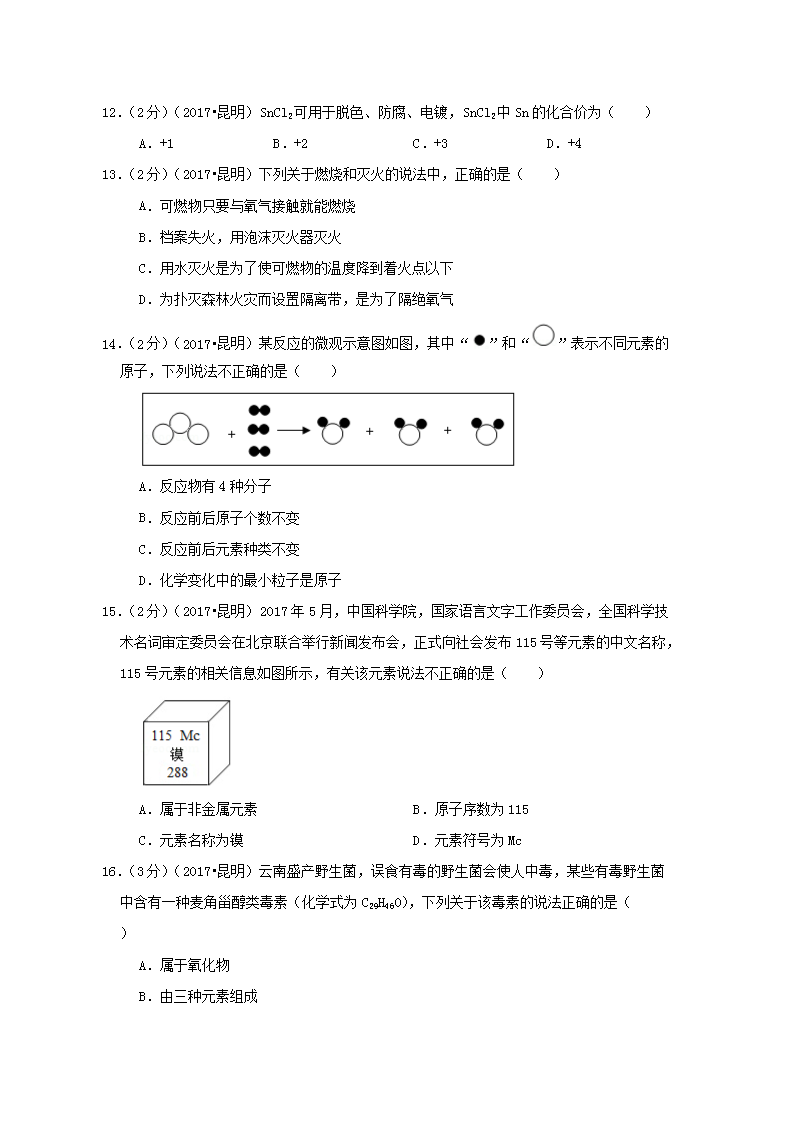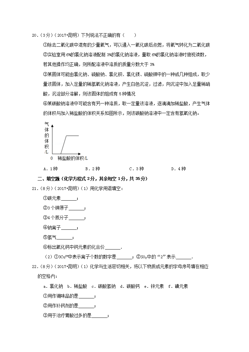 【文档名称】 2017年云南昆明中考化学真题及答案(Word版).doc