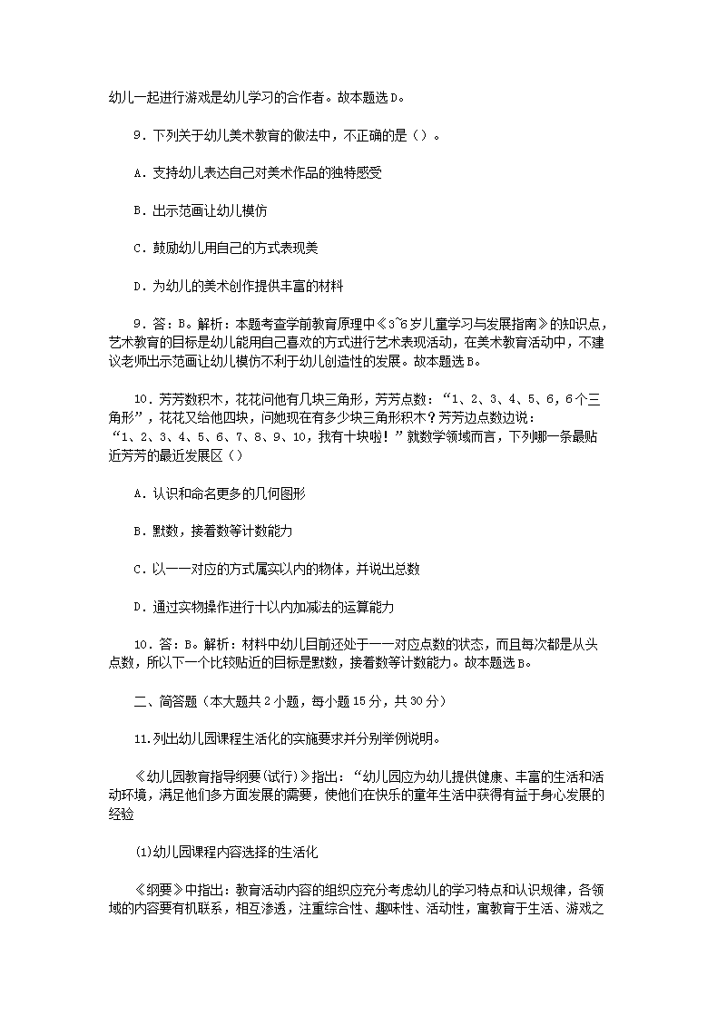 【文档名称】 2019上半年陕西教师资格考试幼儿保教知识与能力真题及答案(Word版).doc