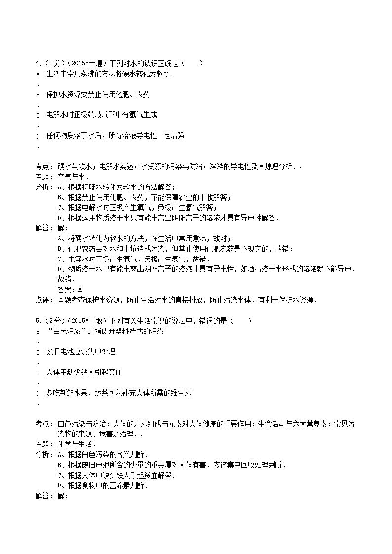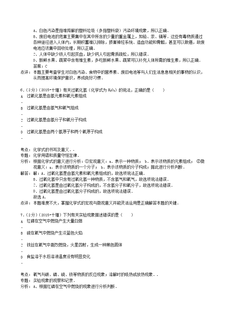 【文档预览】 无忧考网整理发布2015年湖北省十堰市中考化学真题及答案(Word版),前五页预览如下:
