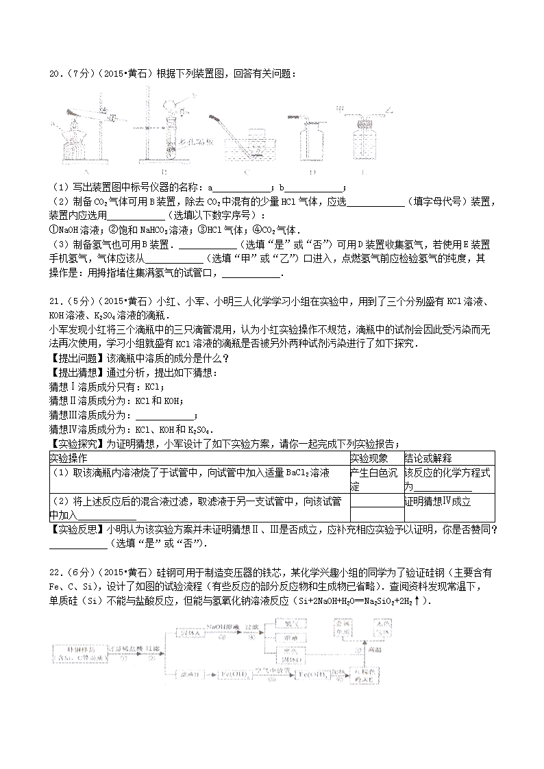 【文档预览】 无忧考网整理发布2015年湖北省黄石市中考化学真题及答案(Word版),前五页预览如下: