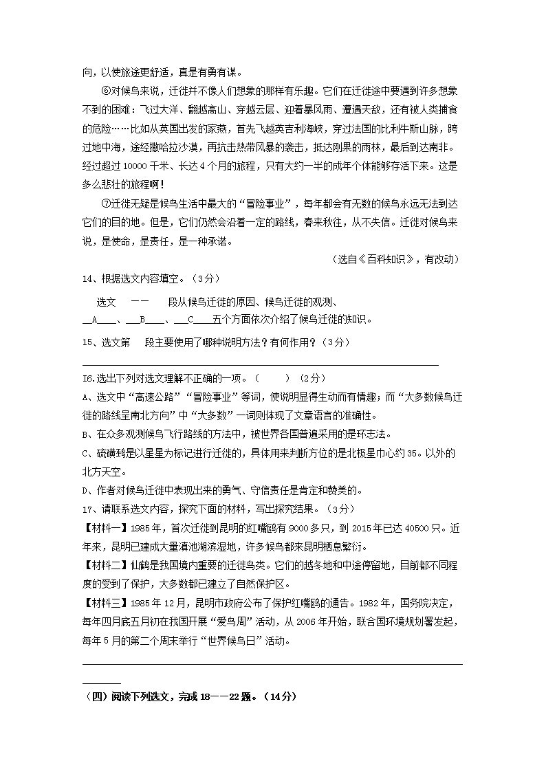 【文档预览】 无忧考网整理发布2017年云南昆明中考语文真题及答案(Word版),前五页预览如下: