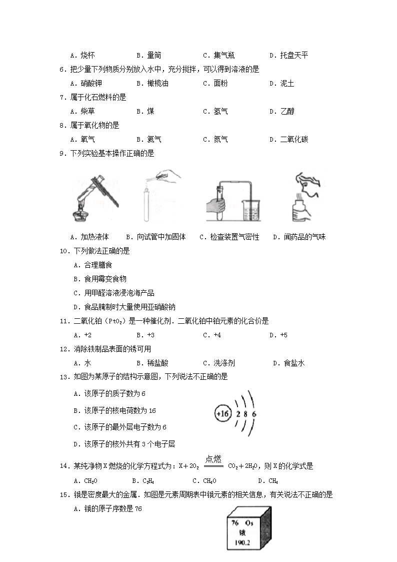【文档名称】 2016年云南昆明中考化学真题及答案(Word版).doc