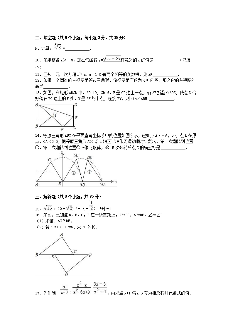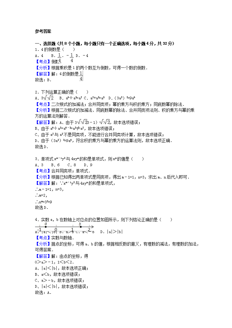 【文档名称】 2016年云南曲靖中考数学真题及答案(Word版).doc