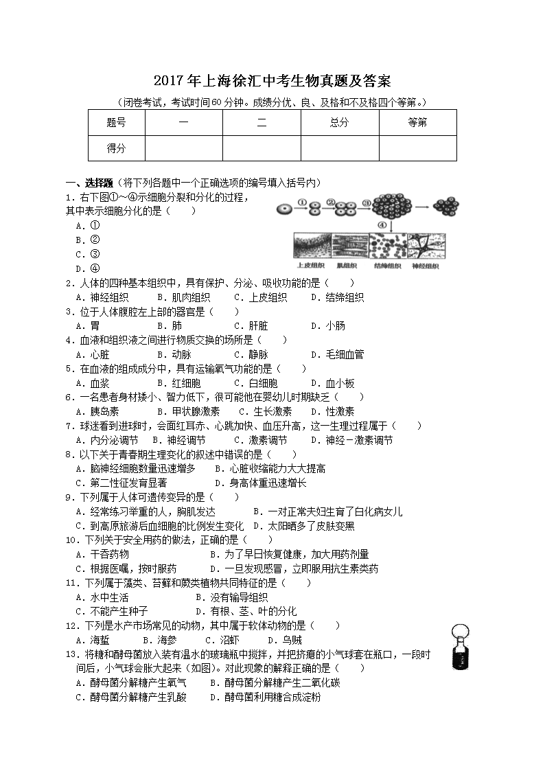 【文档预览】 无忧考网整理发布2017年上海徐汇中考生物真题及答案(Word版),前五页预览如下: