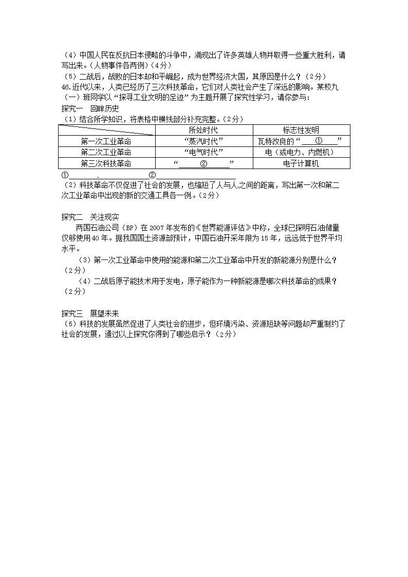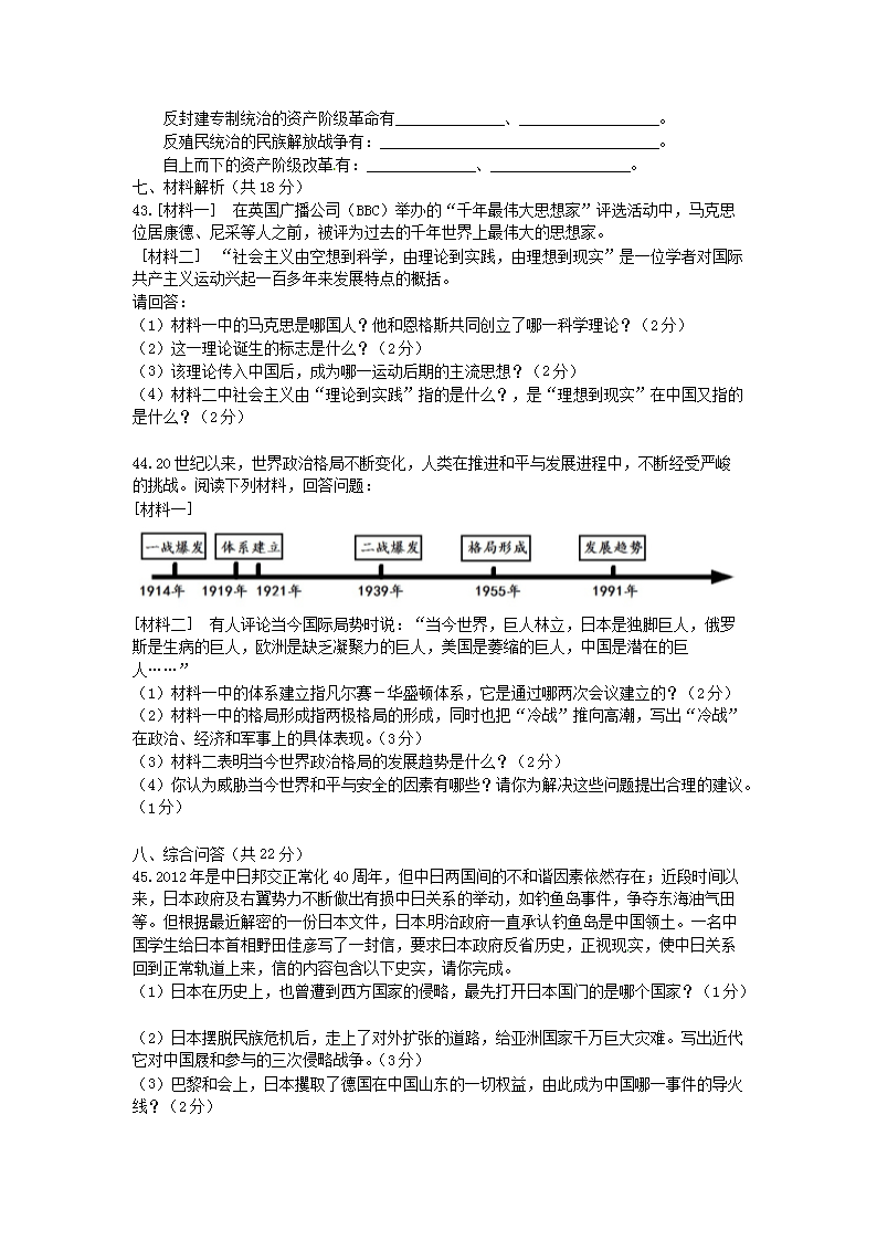 【文档名称】 2012年四川省巴中市中考历史真题及答案(Word版).doc