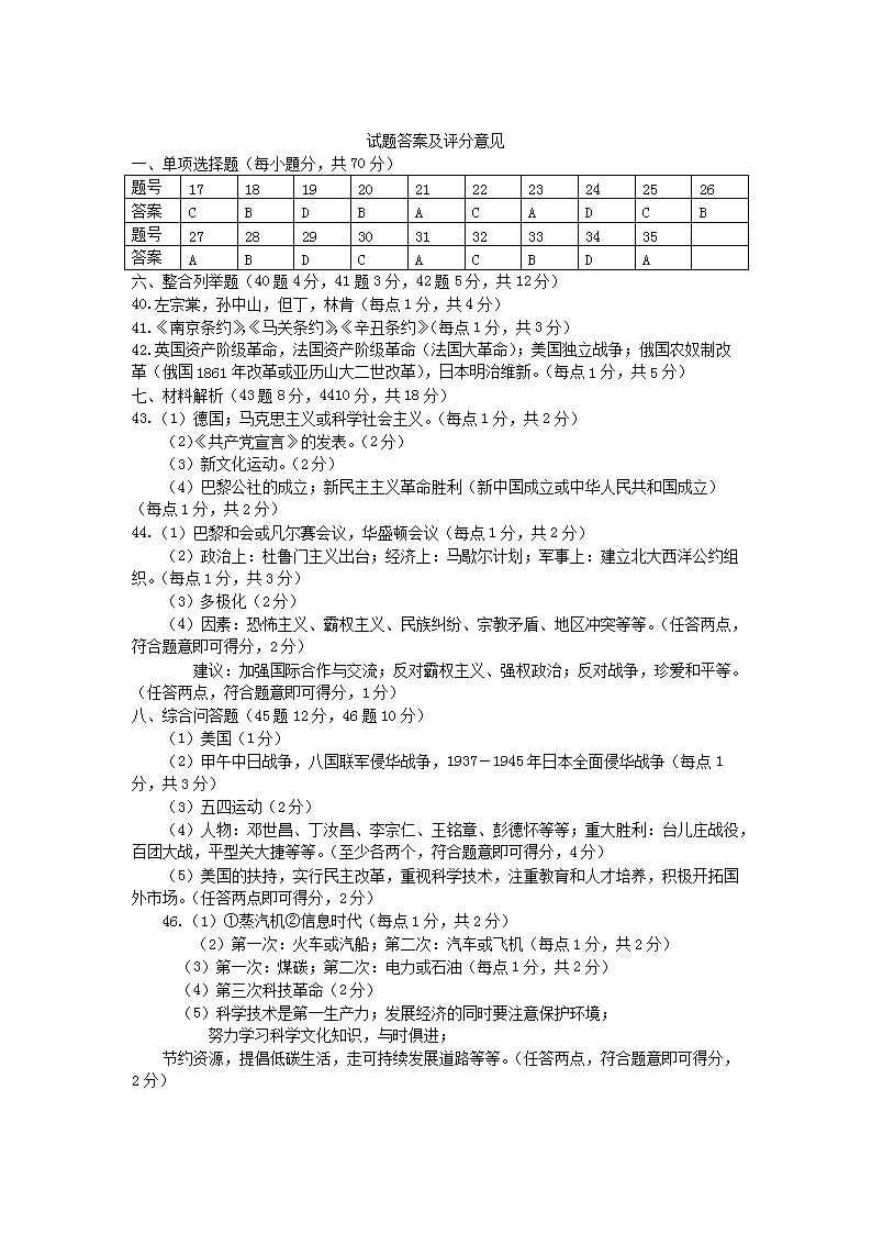【文档预览】 无忧考网整理发布2012年四川省巴中市中考历史真题及答案(Word版),前五页预览如下: