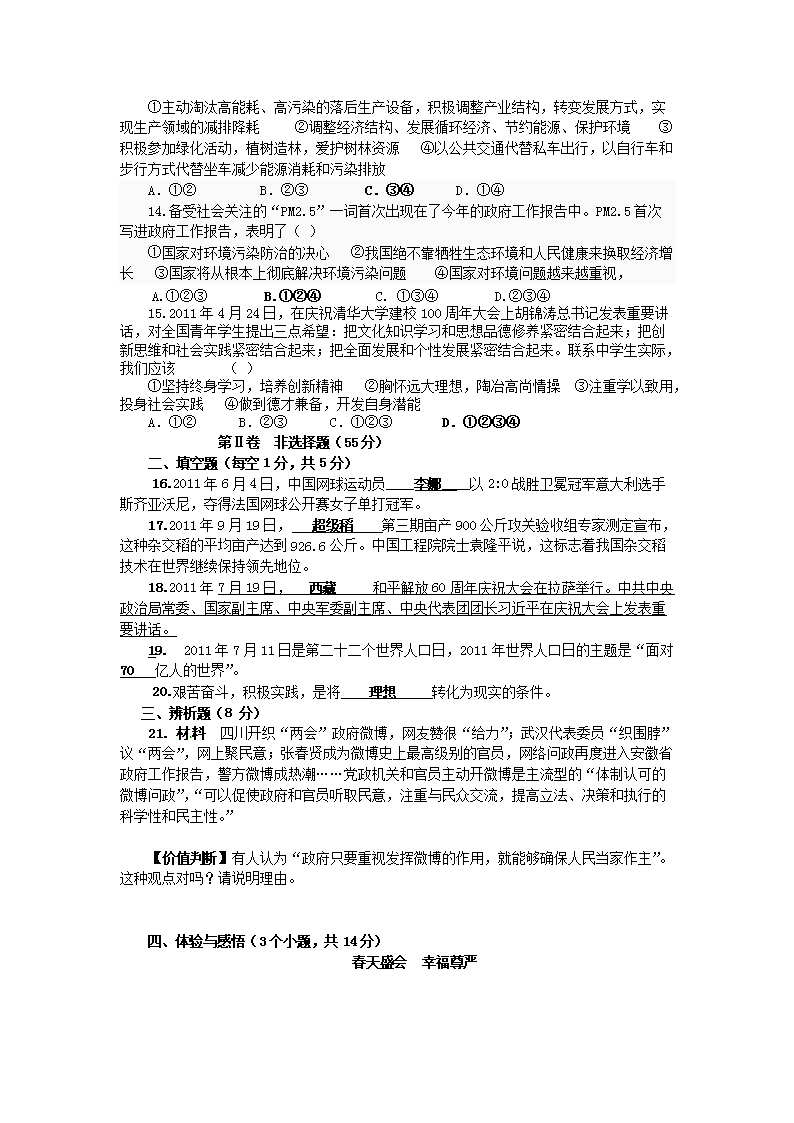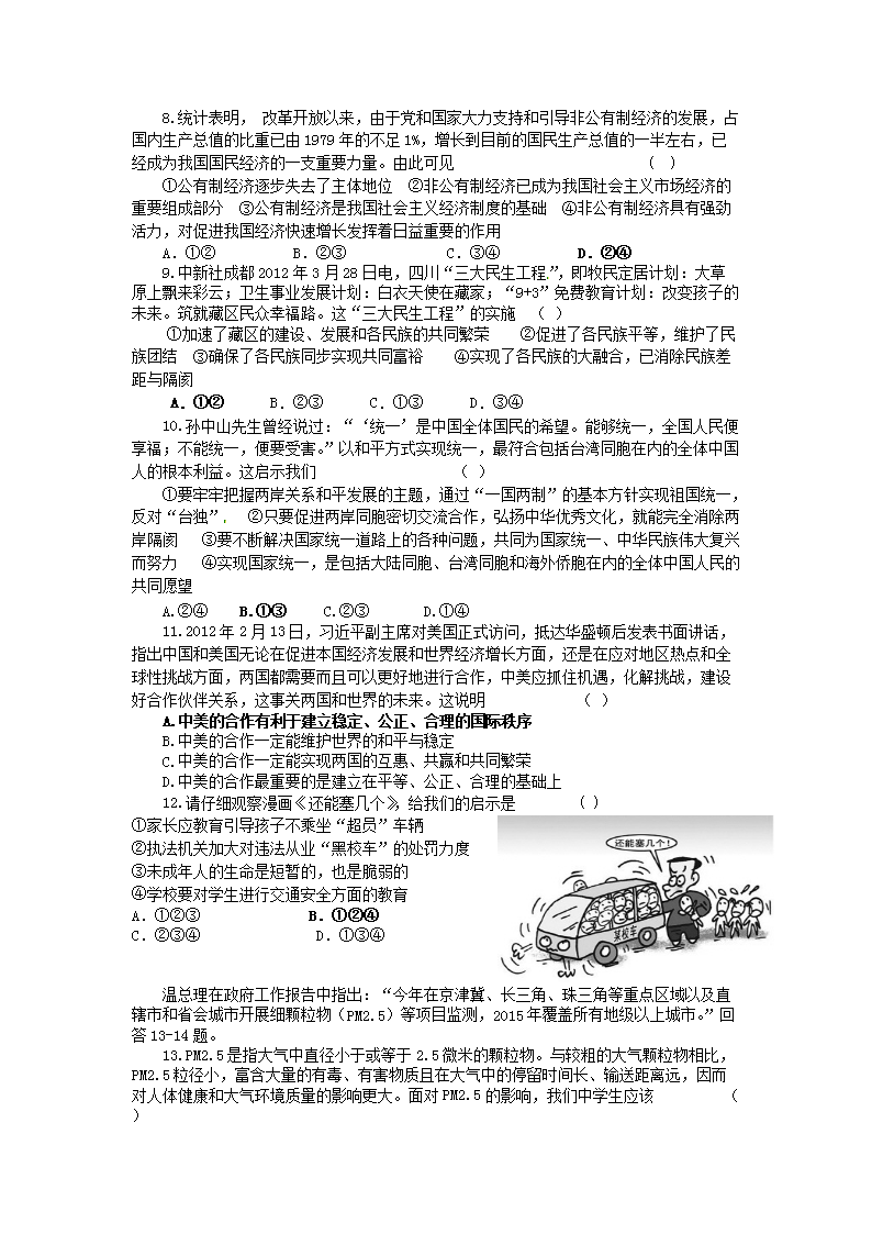 【文档名称】 2012年四川省内江市中考政治真题及答案(Word版).doc