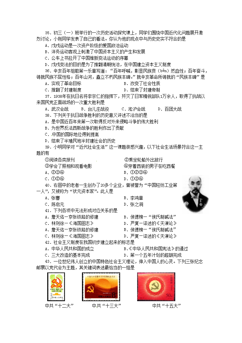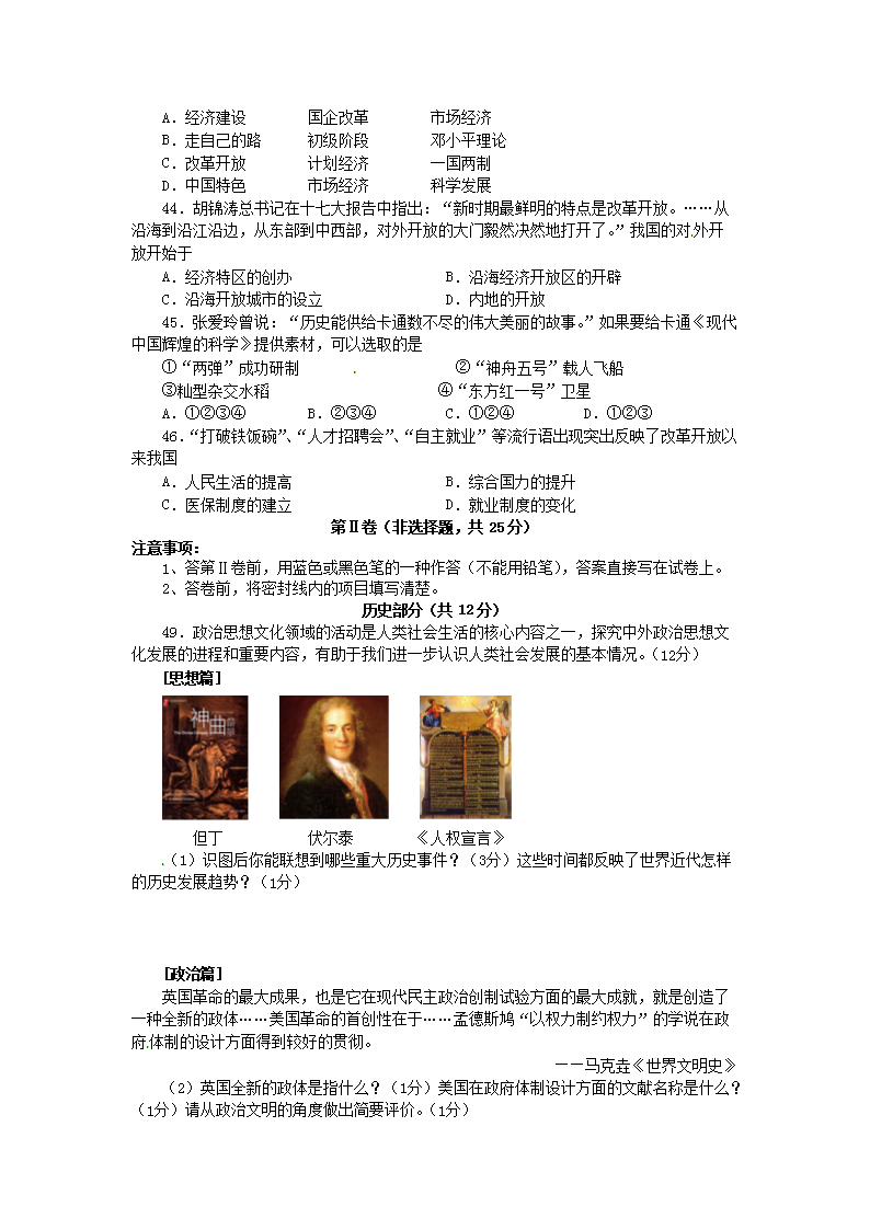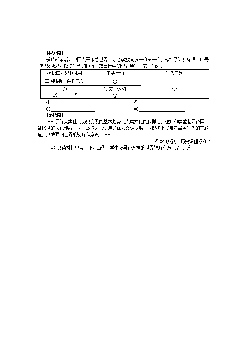 【文档名称】 2012年四川省自贡市中考历史真题及答案(Word版).doc