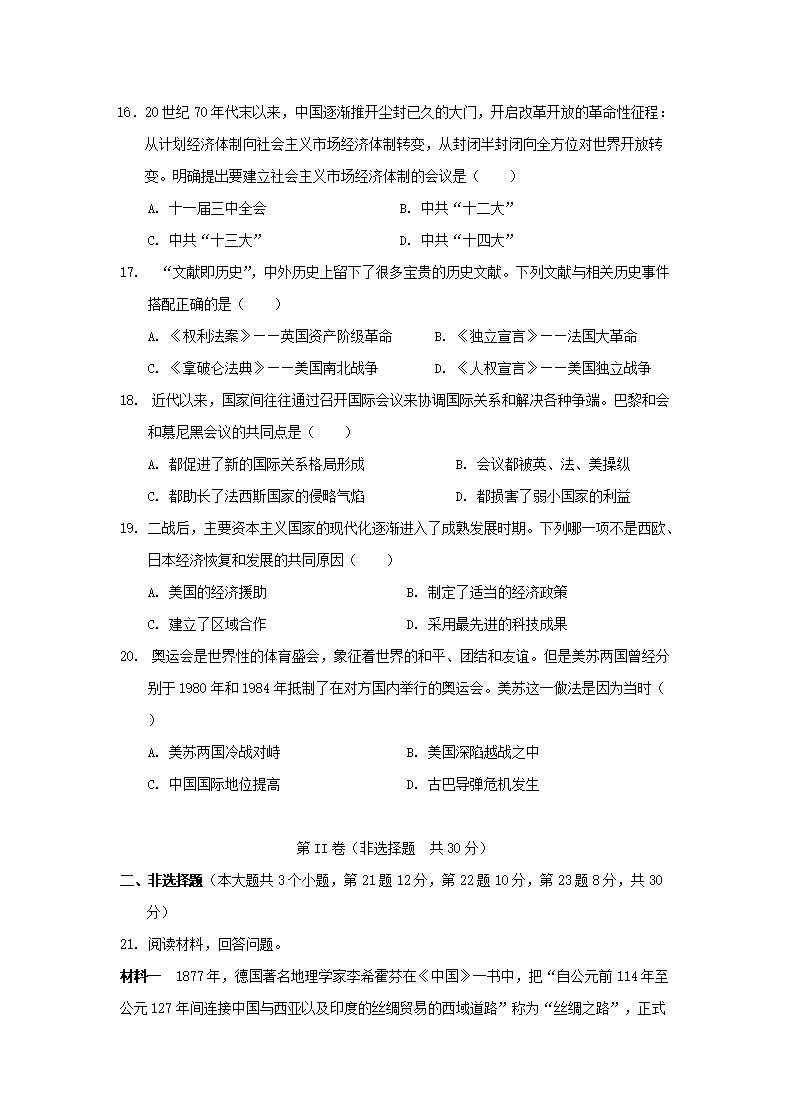 【文档名称】 2016山东省日照市中考历史真题(Word版).doc