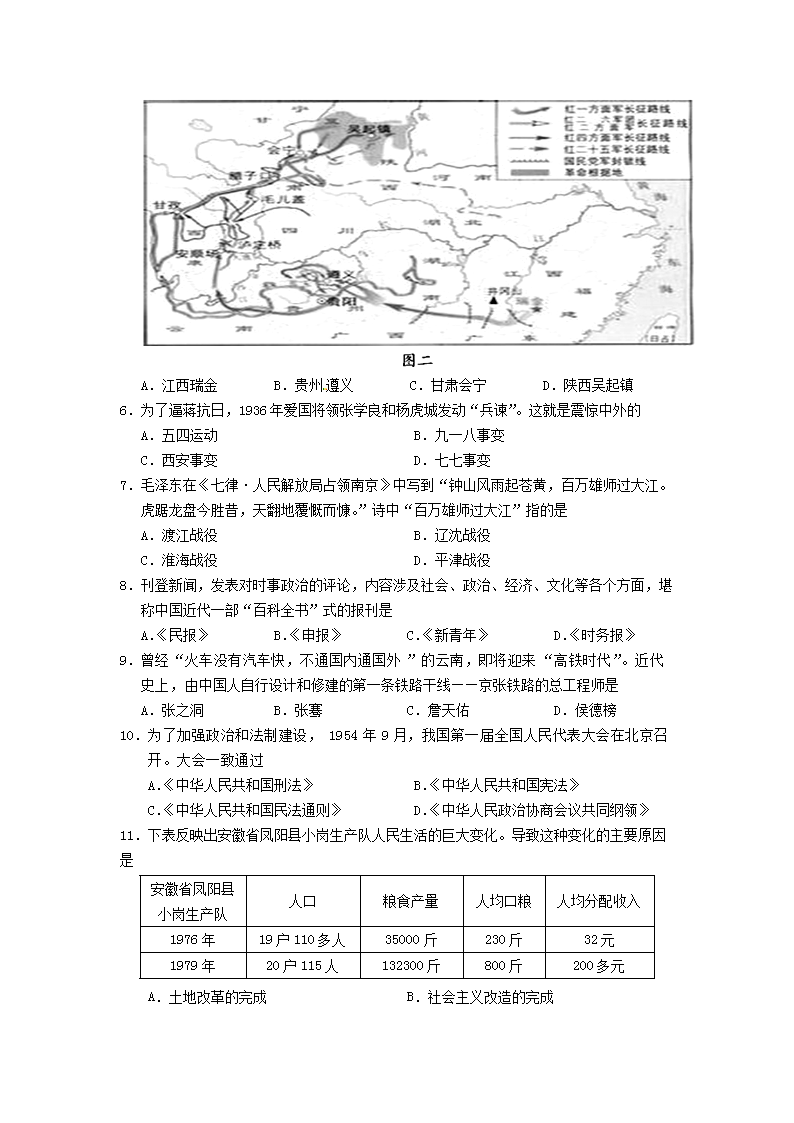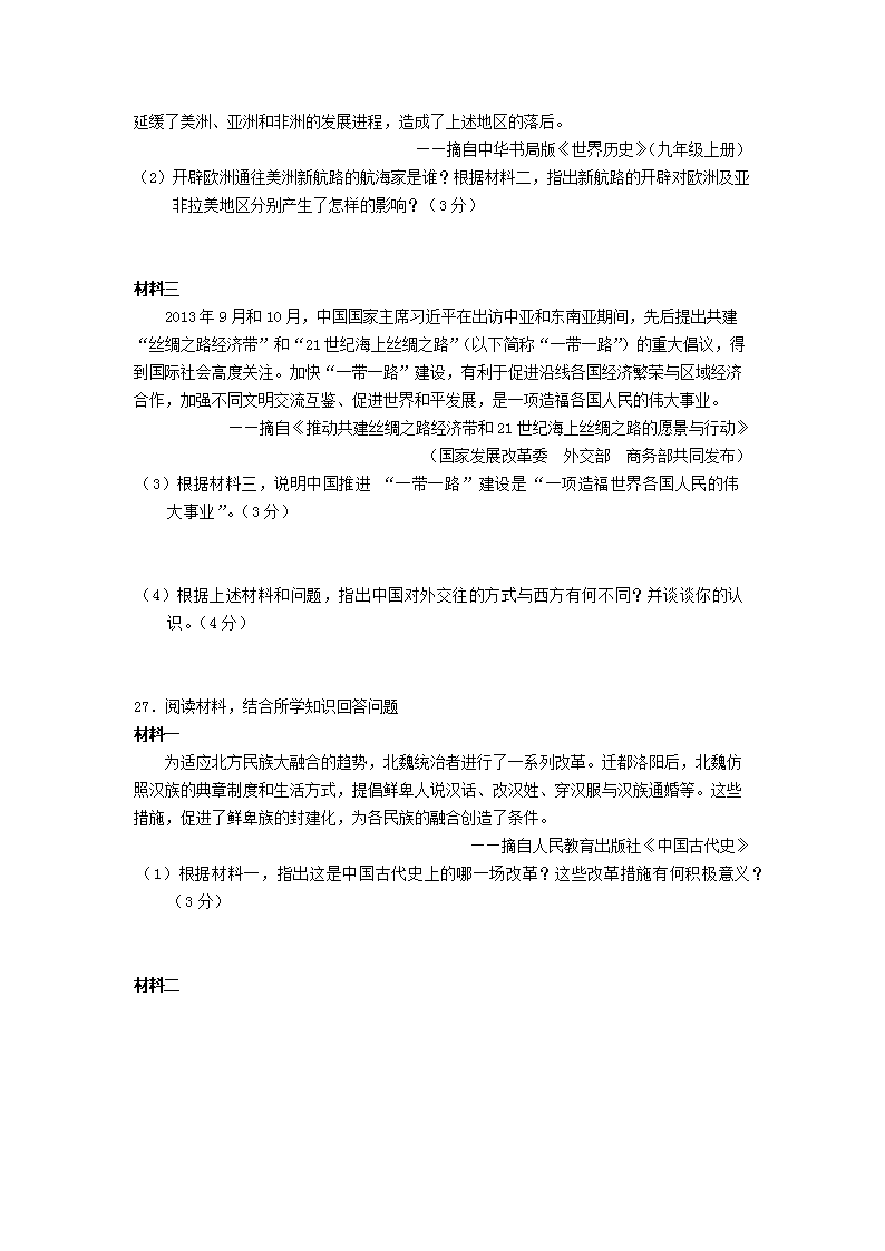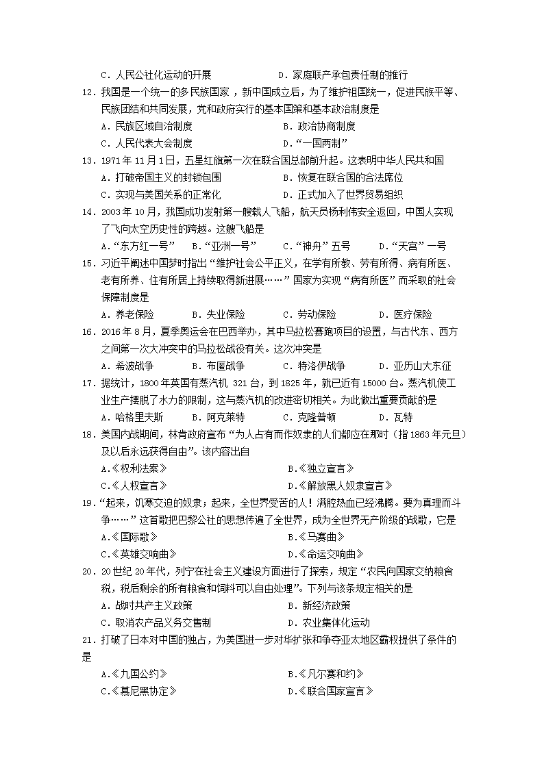 【文档名称】 2016年云南昆明中考历史真题及答案(Word版).doc