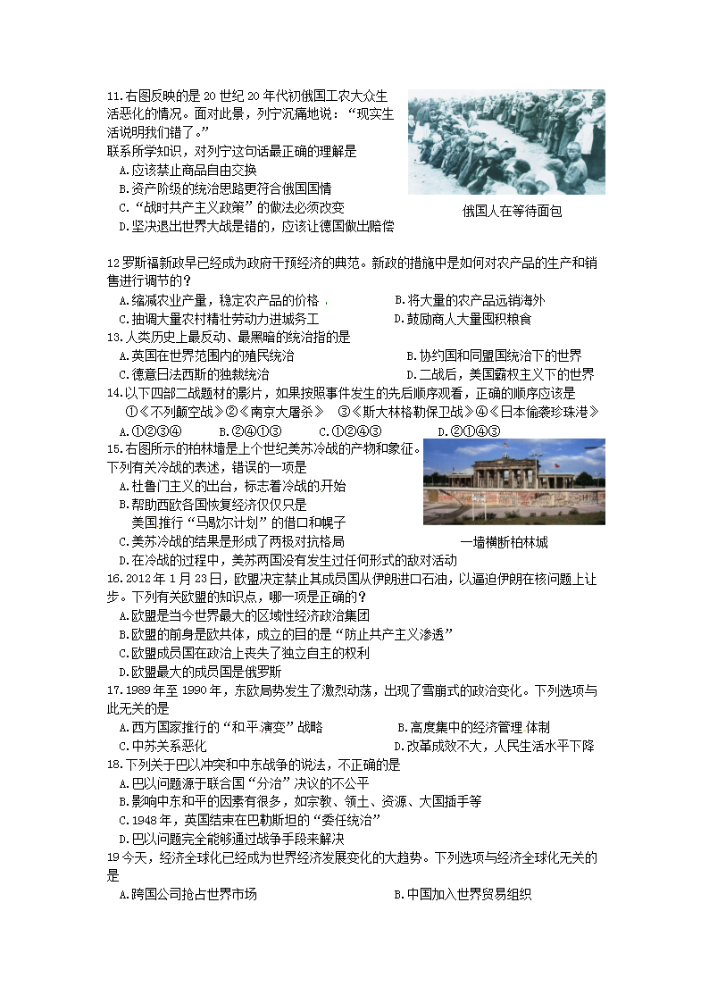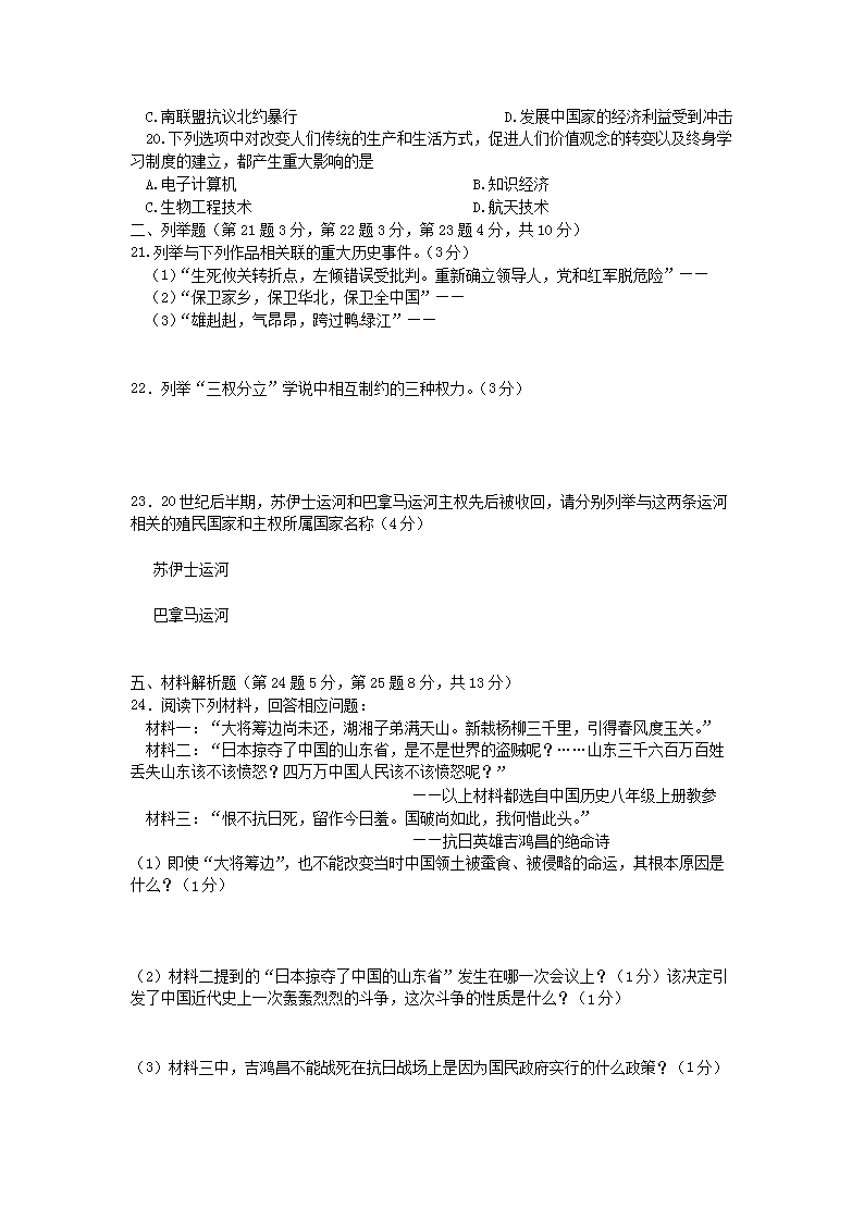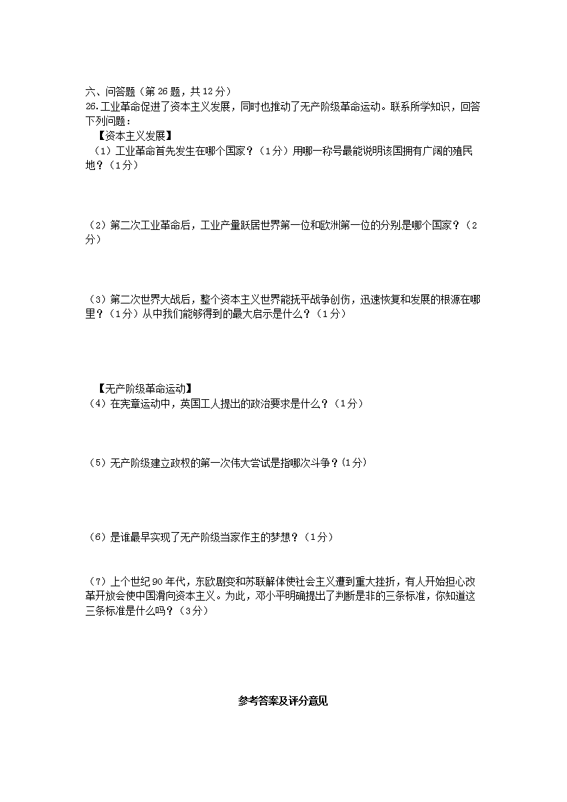 【文档名称】 2012年四川省达州市中考历史真题及答案(Word版).doc