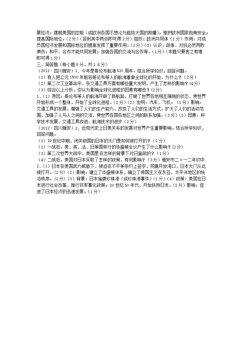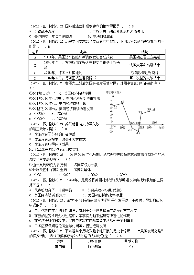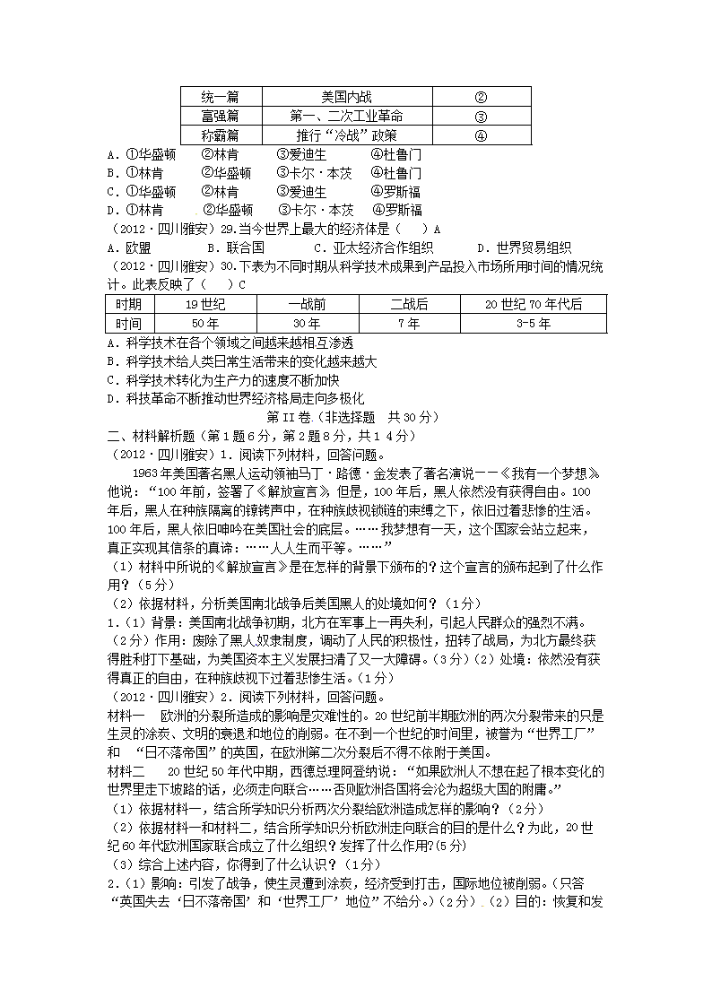 【文档名称】 2012年四川省雅安市中考历史真题及答案(Word版).doc