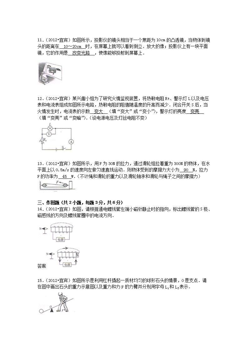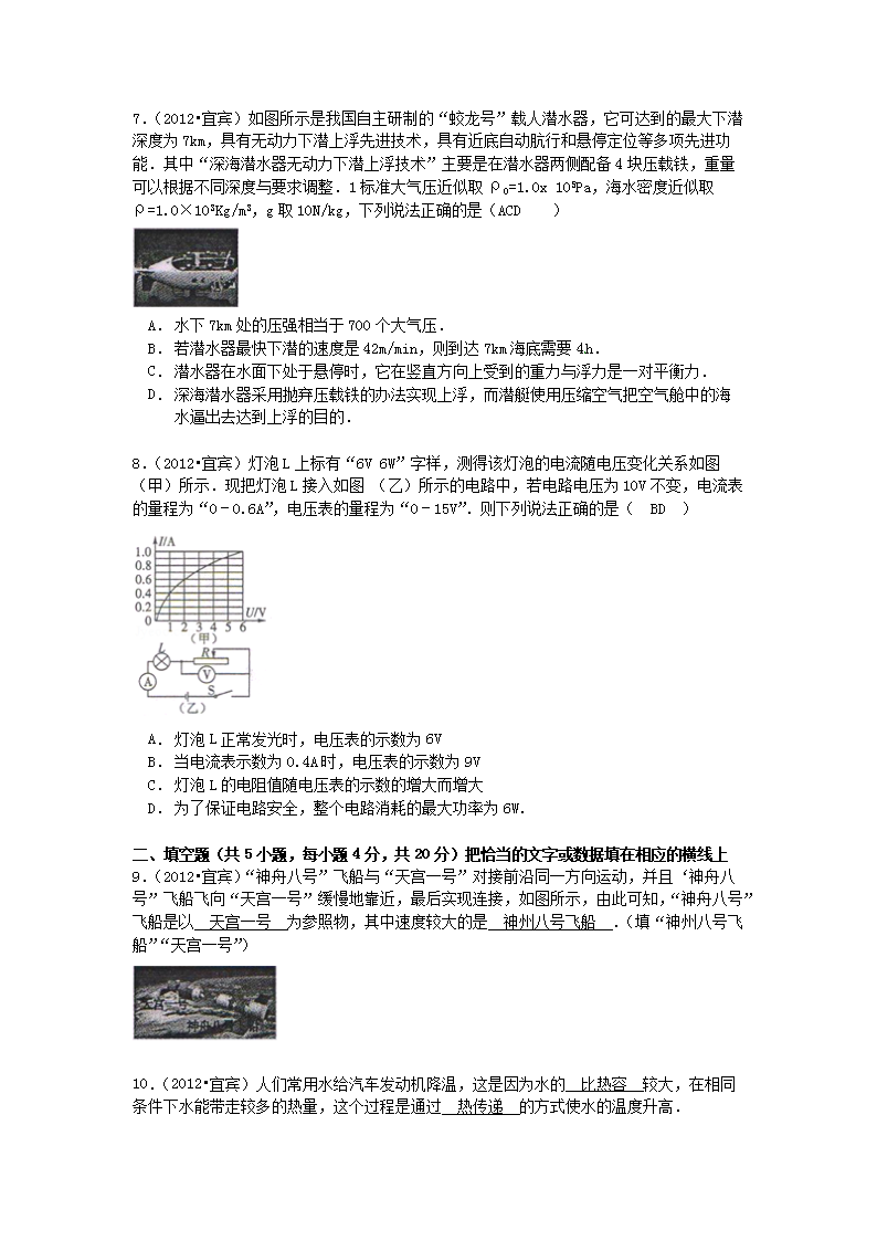 【文档名称】 2012年四川省宜宾市中考物理真题及答案(Word版).doc