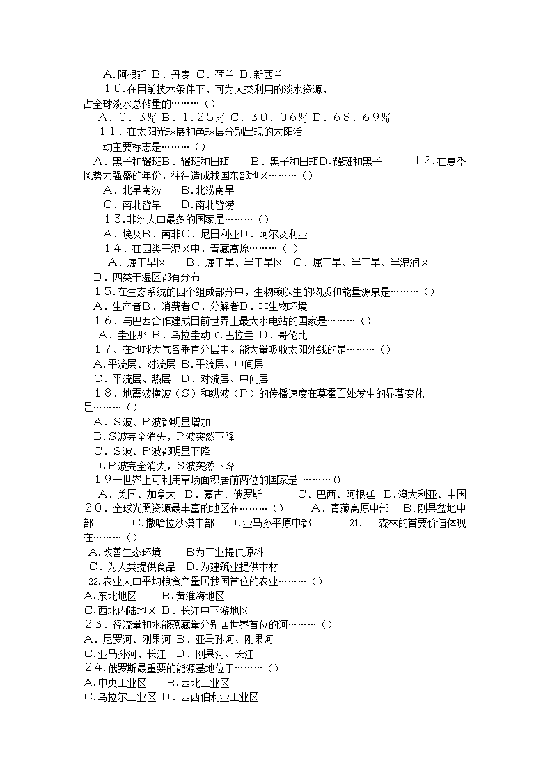 【文档名称】 1998年全国卷高考地理真题(Word版).doc
