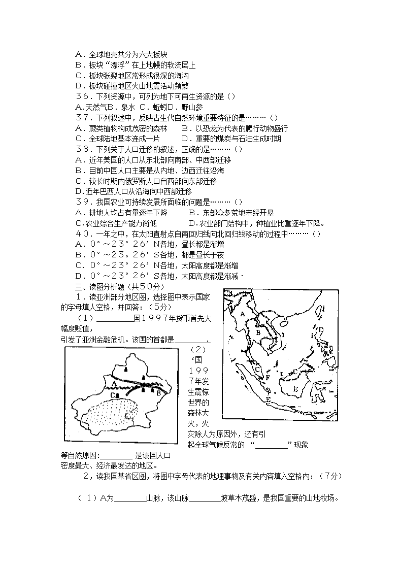 【文档名称】 1998年重庆高考地理真题(Word版).doc