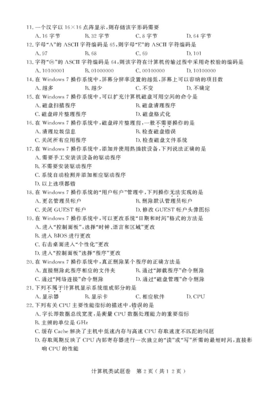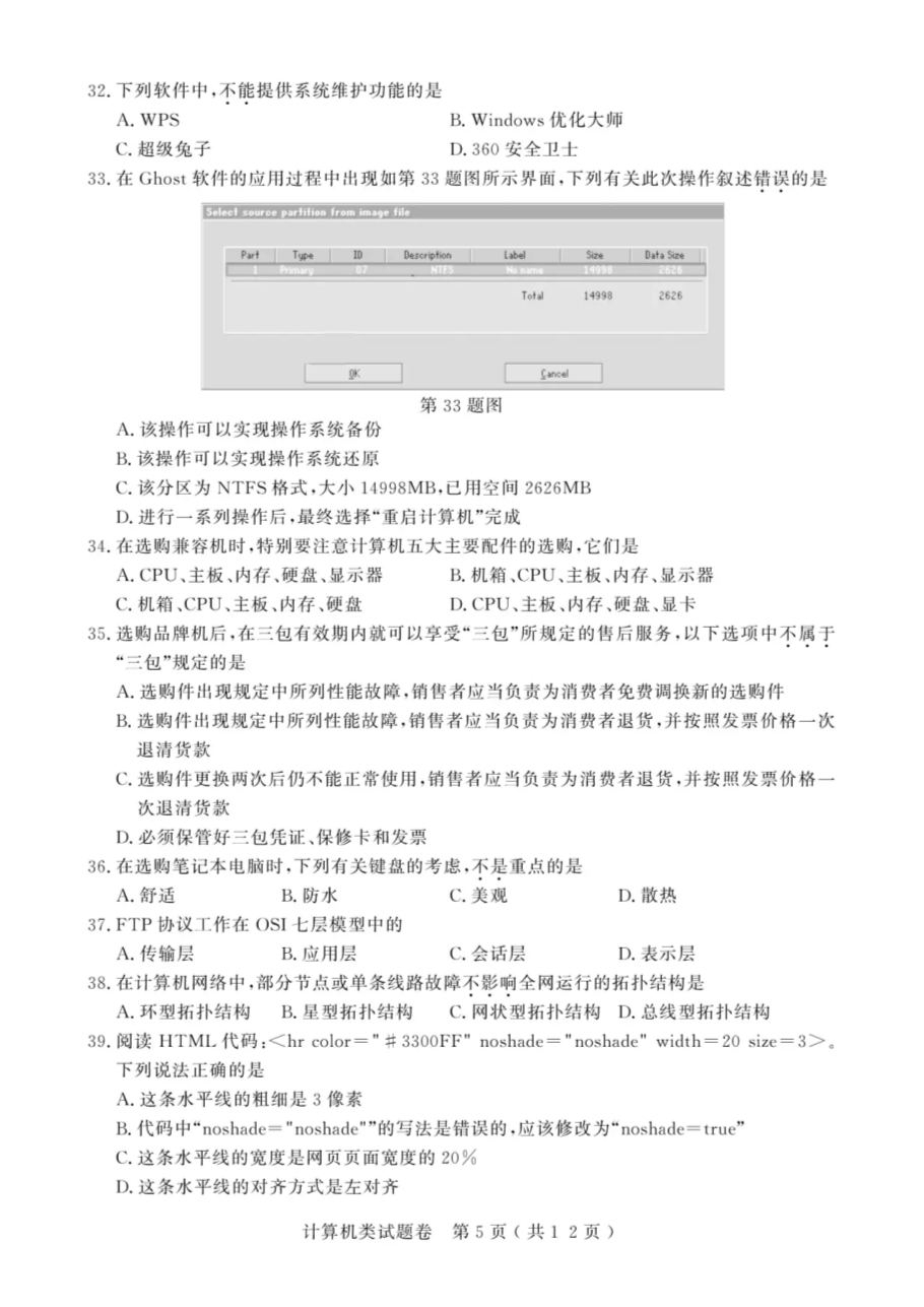 【文档名称】 2021年浙江高校招生职业技能理论考试(计算机类)试题及答案(图片版).doc