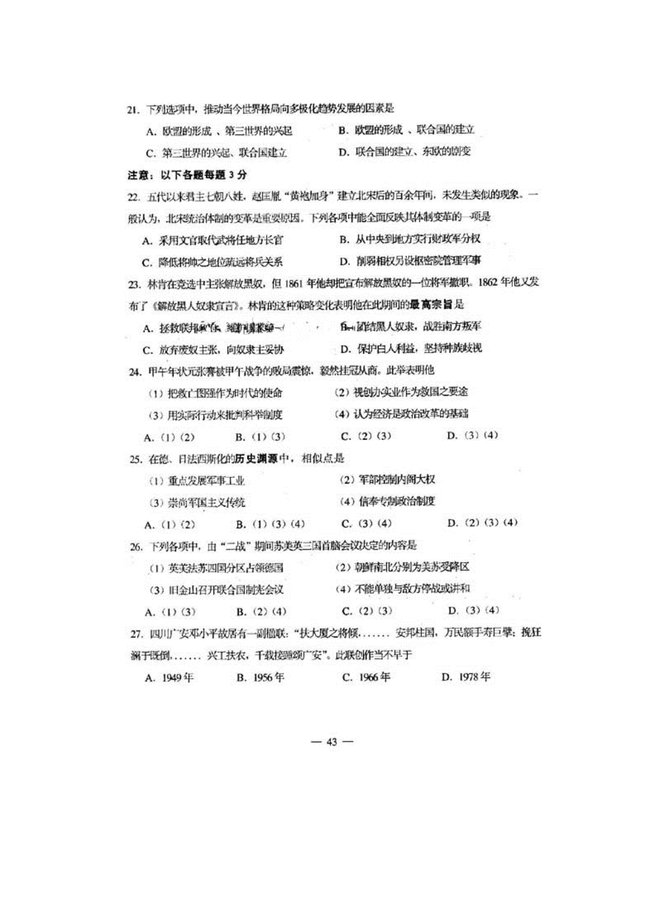 【文档名称】 2001年上海高考历史真题及答案(图片版).doc