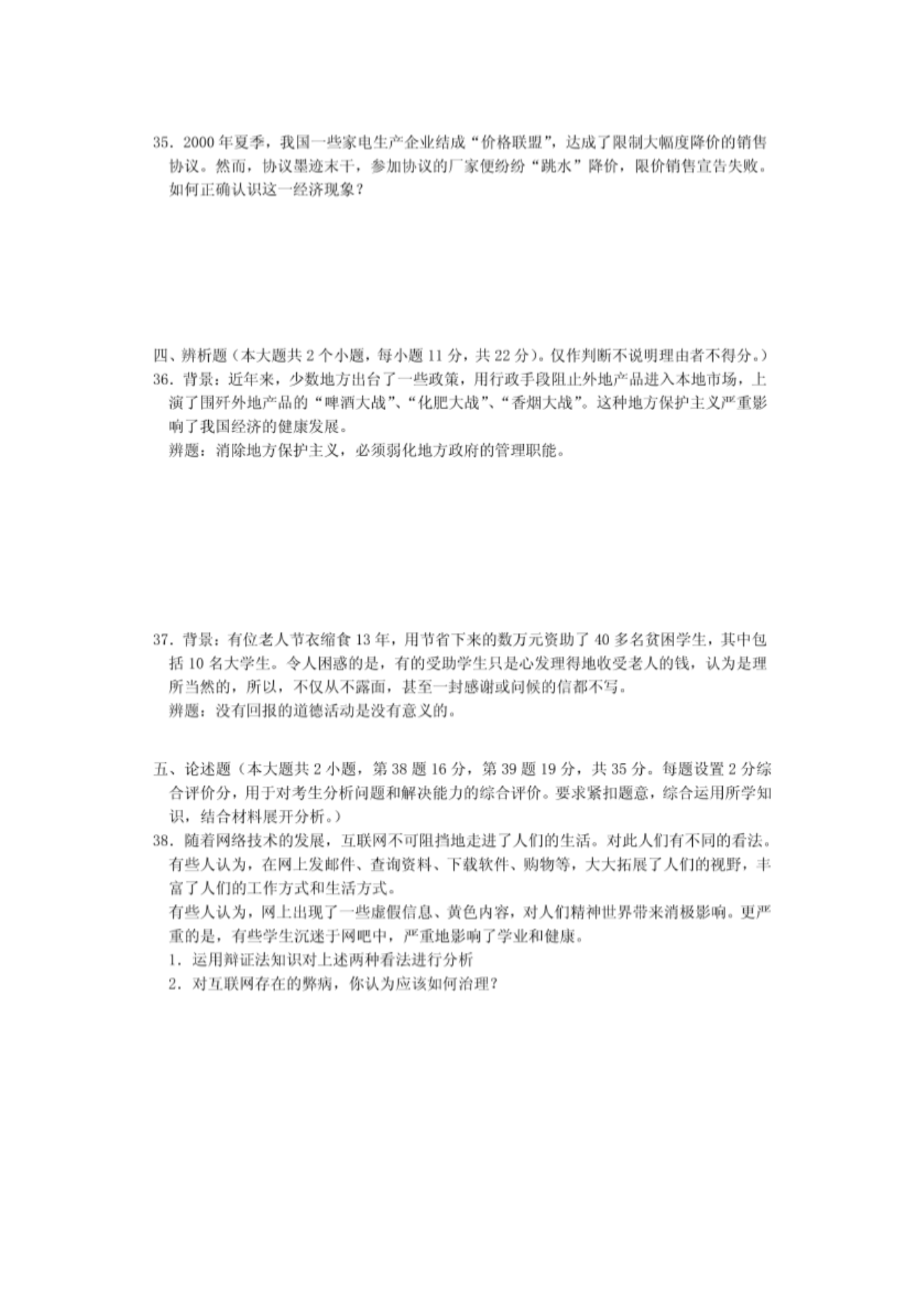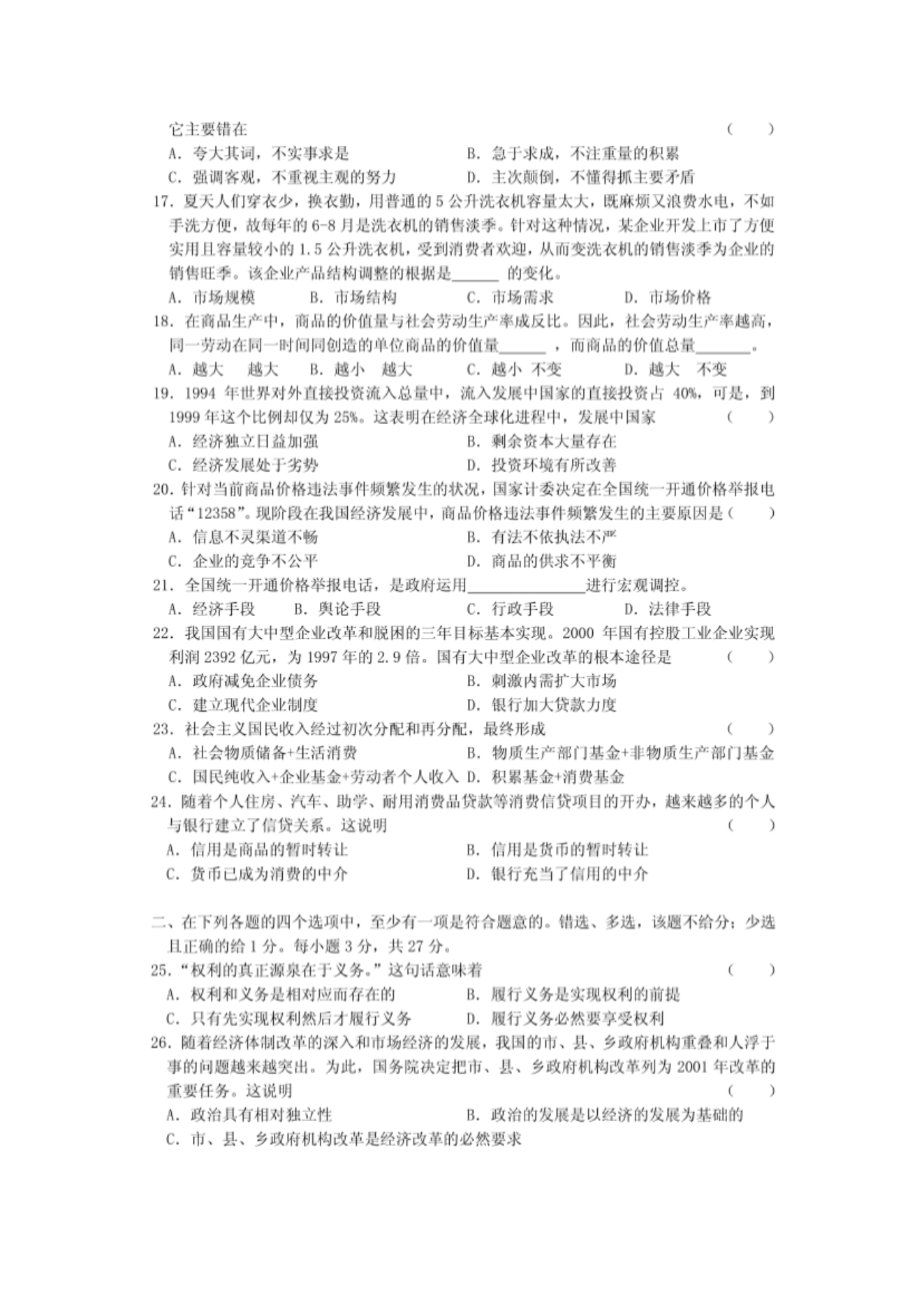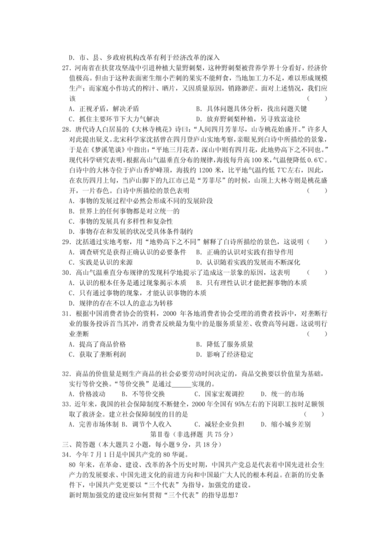 【文档名称】 2001年广东高考政治真题及答案(图片版).doc