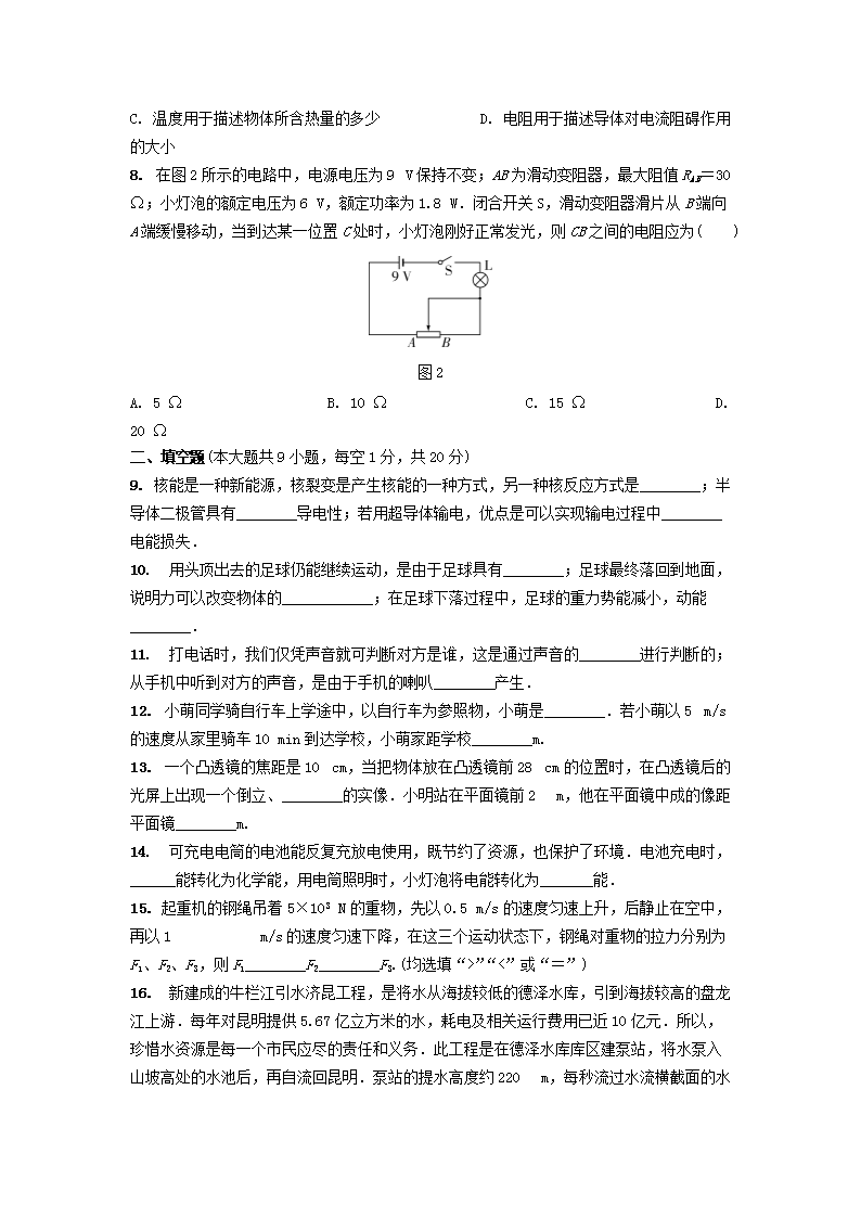 【文档名称】 2015年云南昆明中考物理真题及答案(Word版).doc