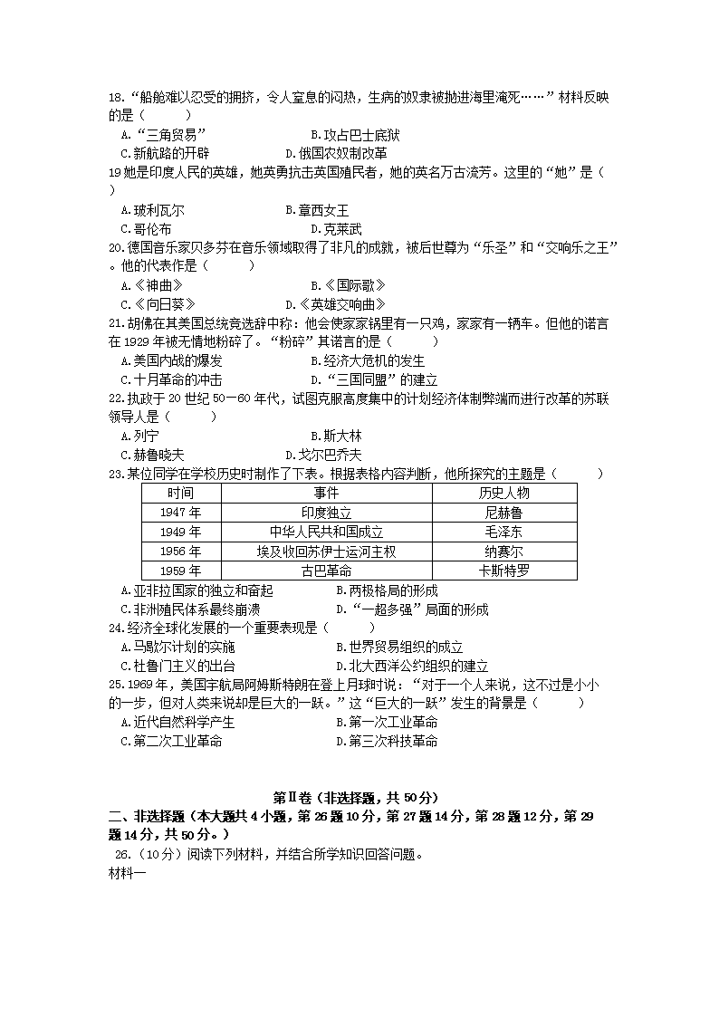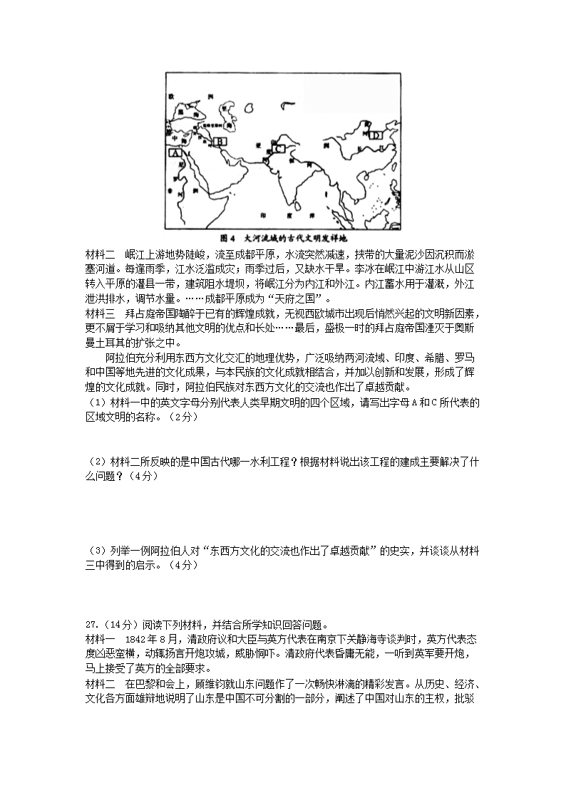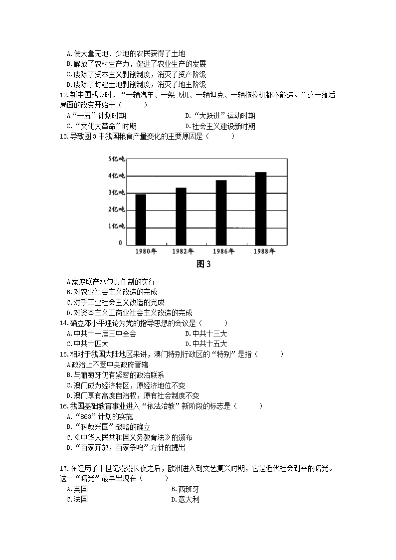 【文档名称】 2015年云南曲靖中考历史真题及答案(Word版).doc