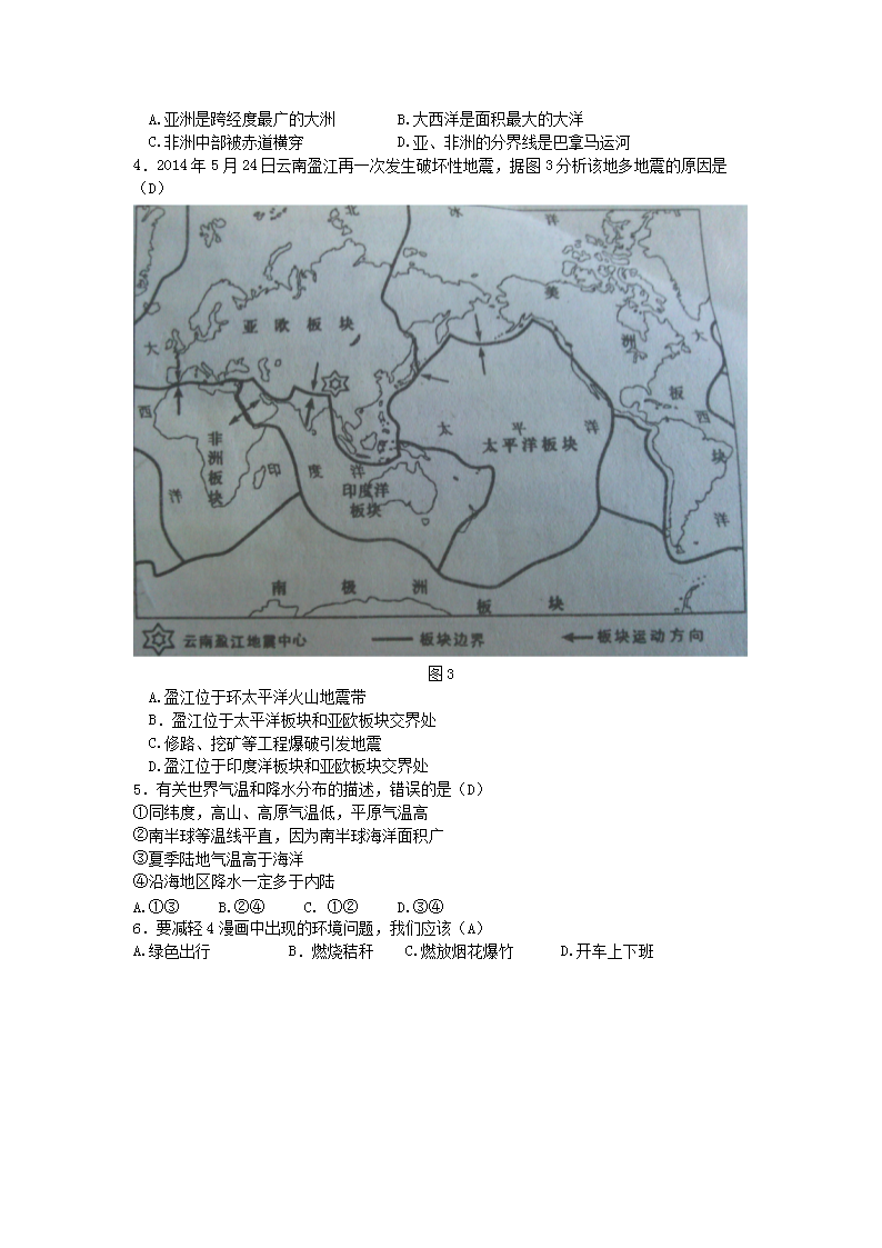 【文档名称】 2014年云南昆明中考地理真题及答案(Word版).doc